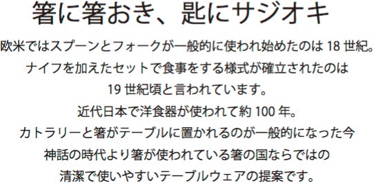 カトラリーの歴史はせいぜい200年ぐらいのものです。用途別に最低限でも正式マナーは9種類。文明開化で日本に入ってきて約150年経ちます。昭和では洋食に箸を用いるのはタブーでしたが最近はかなり自由になってきました。土足の文化圏にマナーを寄せるよりも、日本のお作法で清潔に使うにはカトラリーにも箸置きに変わる何かが必要なのではと考え、今回のクラウドファンディングに至りました。