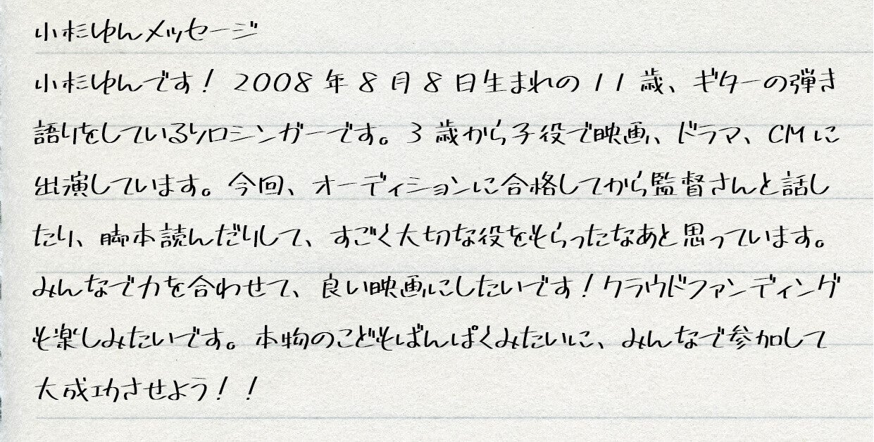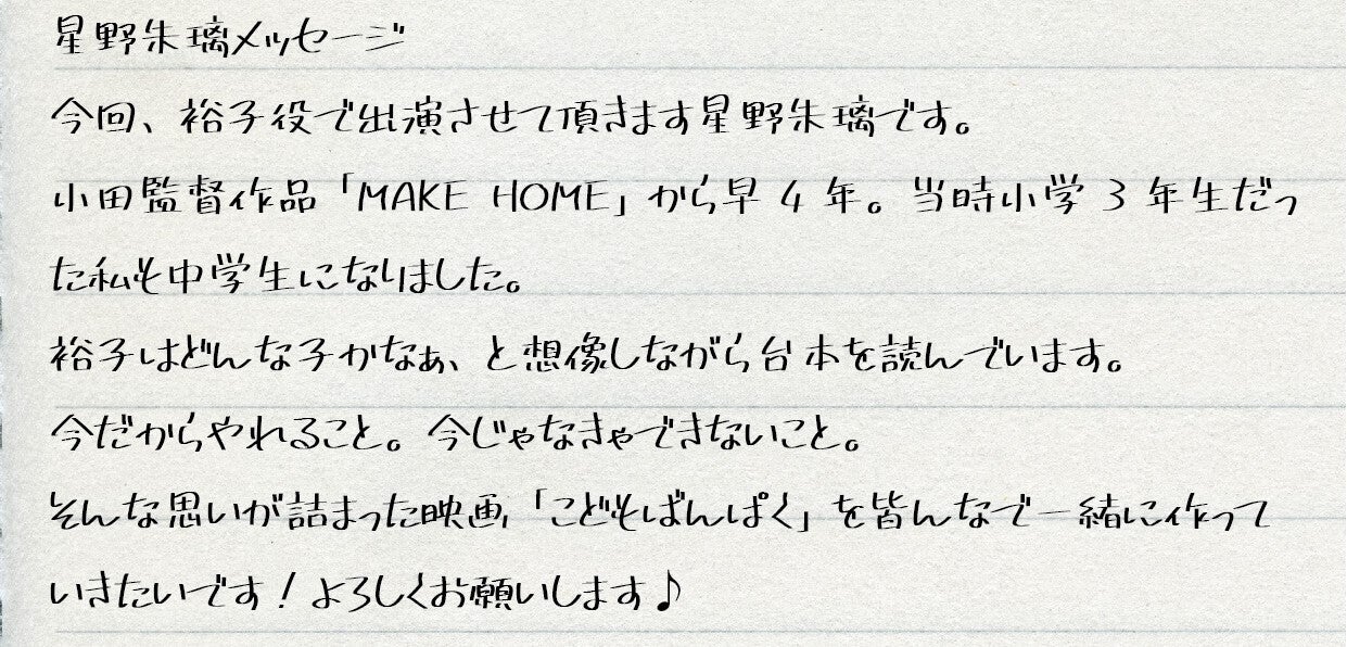 キャストとスタッフ、そしてみなさんと力を合わせてこの映画を作っていきます。