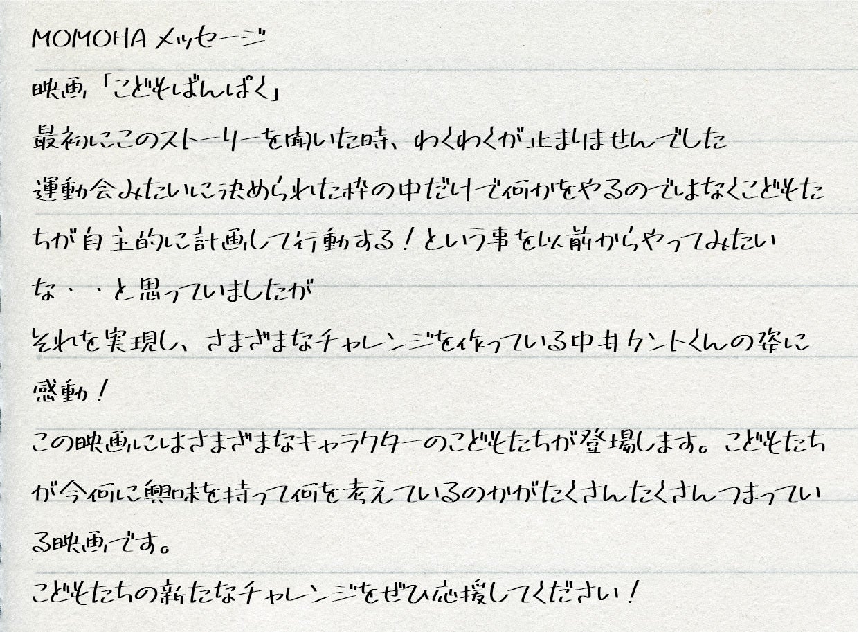 「こどもばんぱく」が元になった映画が出来るのはとても嬉しいです。.