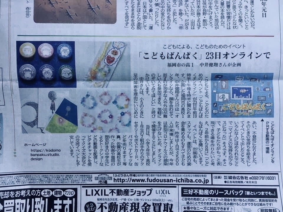 西日本新聞に「こどもばんぱくオンライン」開催の事を掲載して頂きました!!