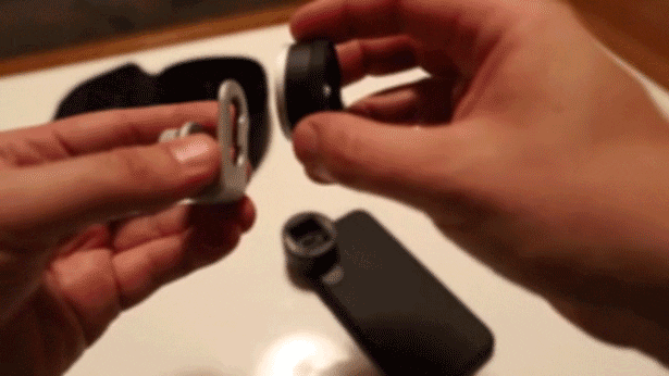 ユニバーサルレンズクリップは挟むだけでワンタッチ装着。一般的なスマホカバーの上からでも取り付け可能です。