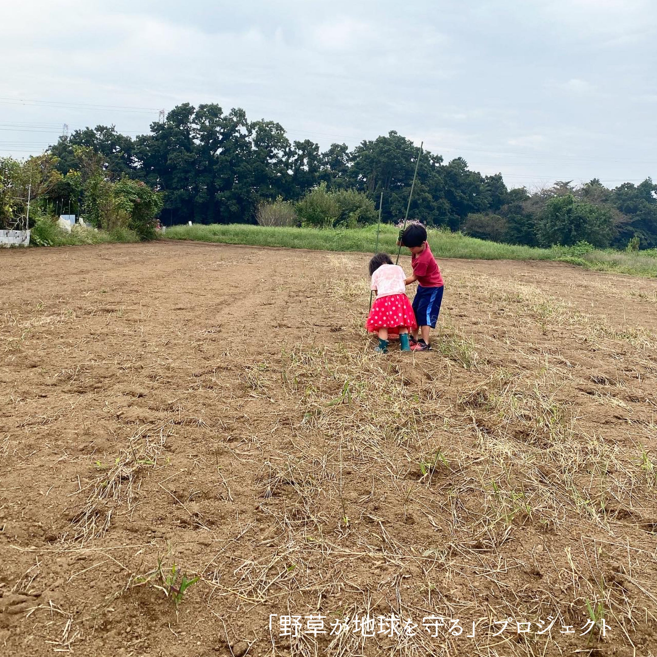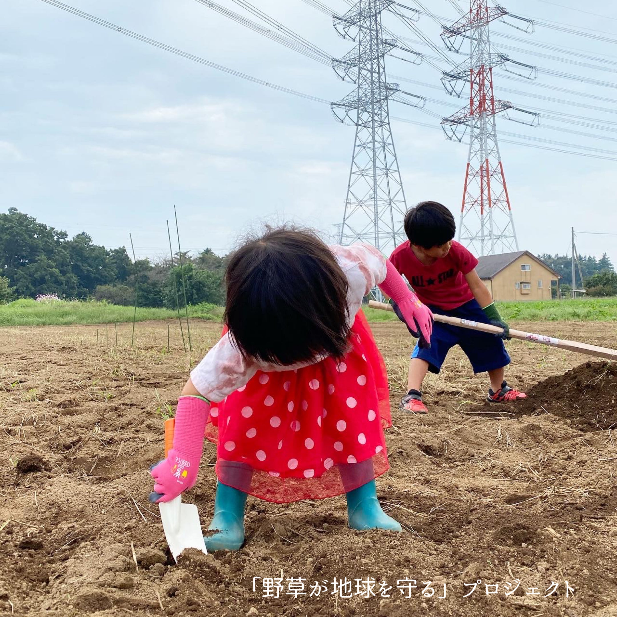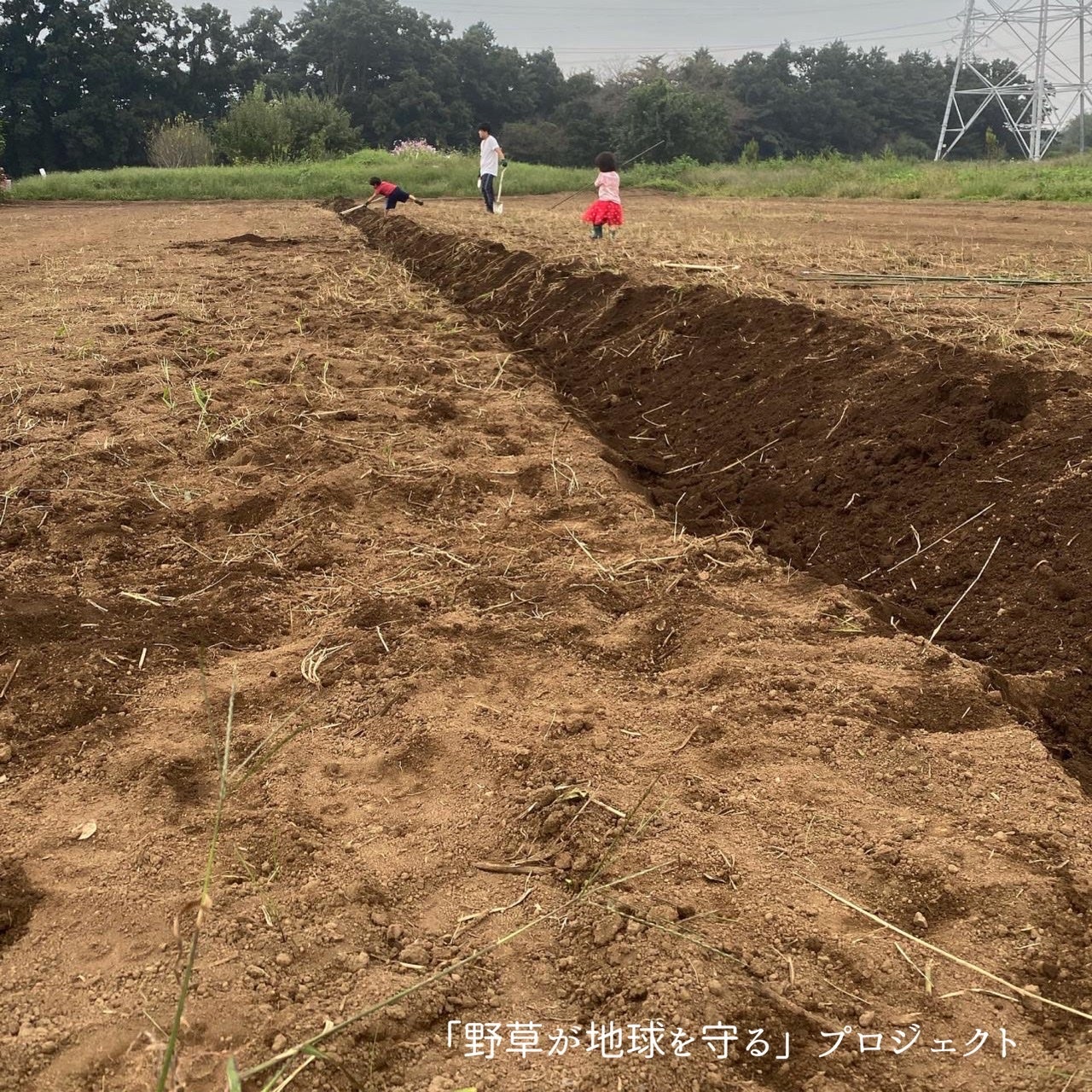 子どもたちに鍬(くわ)とシャベルを渡すと、夢中になって土掘りをしてくれます。