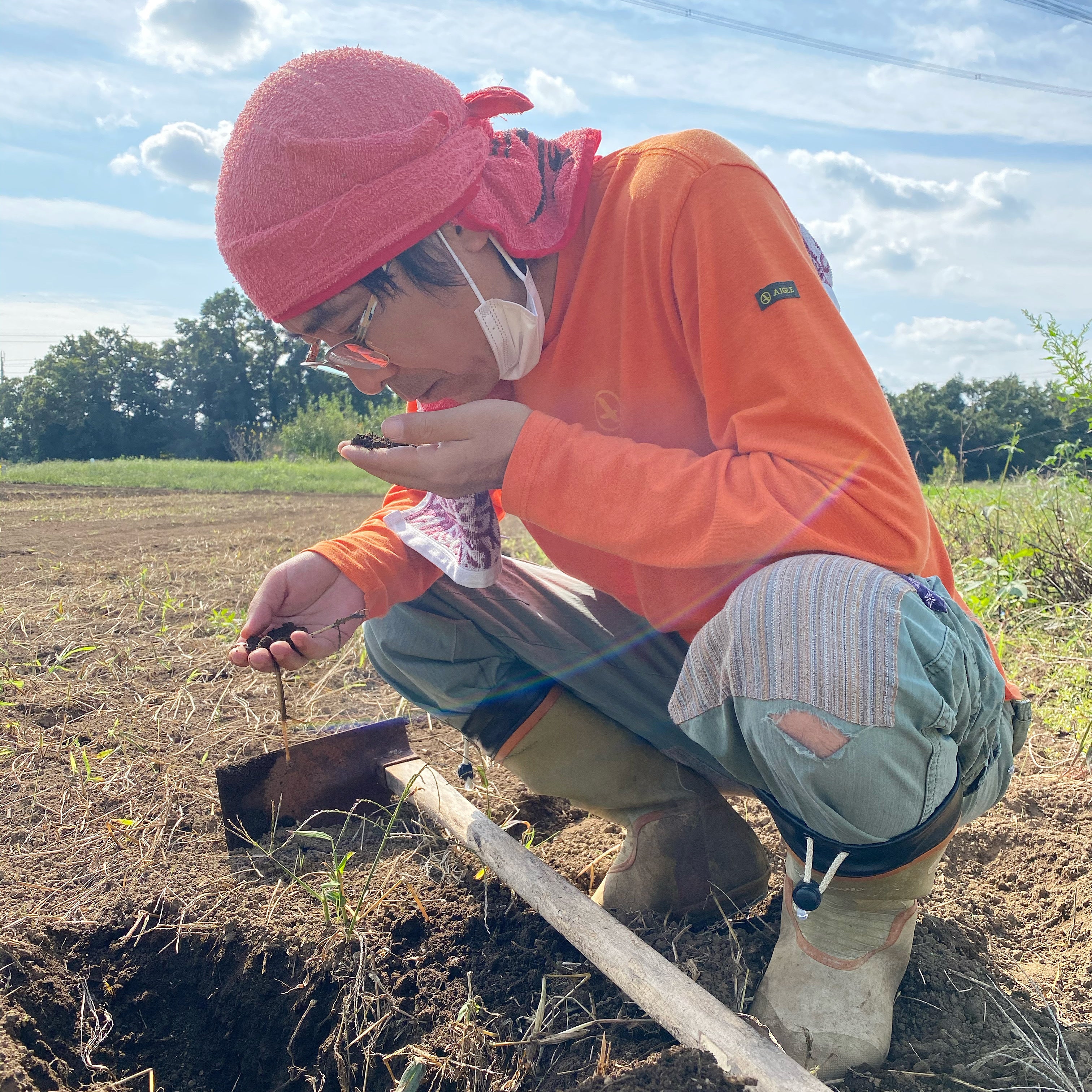 メンバーの森 昭彦は土の性質を知るために、土を掘り、色や水分をみたり、土壌にいる虫を調べてくれました。土で生活している虫から、その土壌の豊かさを知ることができるのです。(森 昭彦は「ファーブルが観た夢: 地球生命の不思議な迷宮」の著者です)