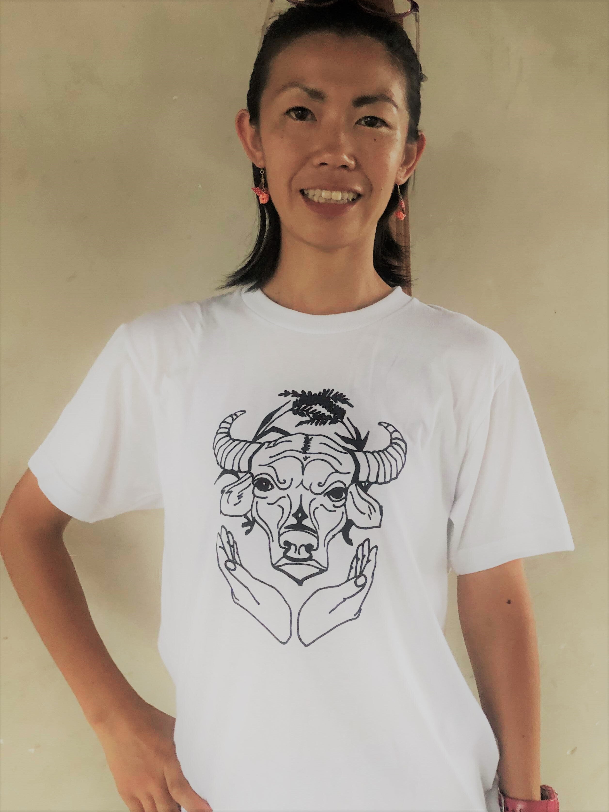 私たちが1枚1枚シルクスクリーンでプリントしていくので、にじみやかすれが出ることもありますが、世界に1枚のTシャツを楽しみにしていてくださいね。