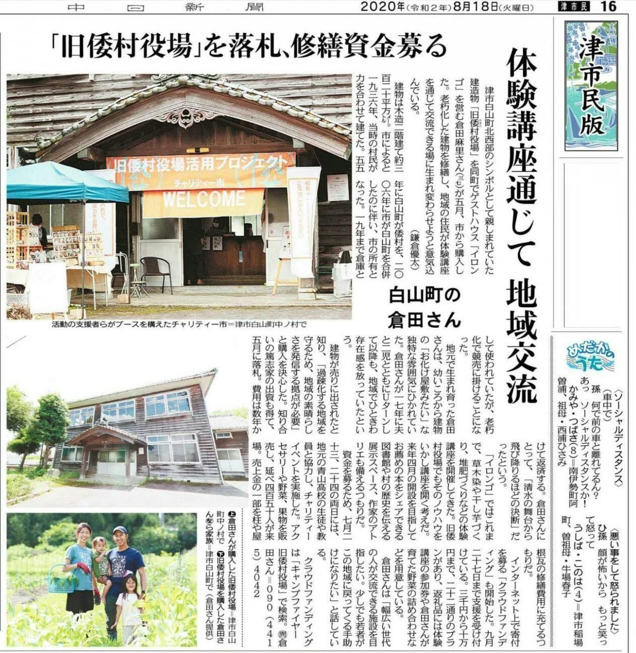 本日の中日新聞の朝刊、津市民版に掲載していただきました。