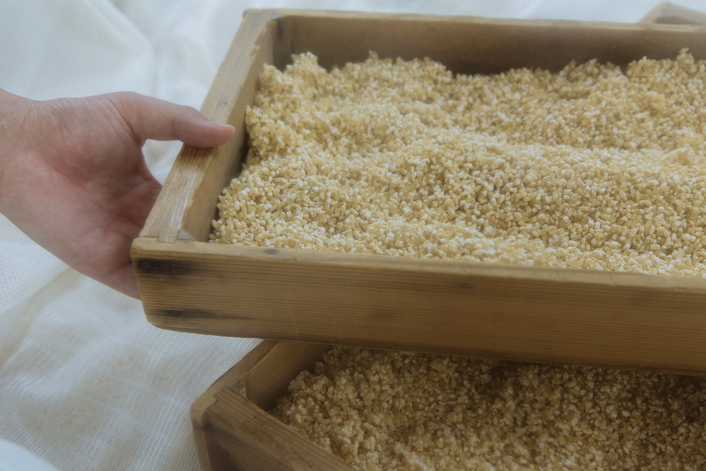 このもとみやさんのご協力により、今回開発する甘糀用に、特別に「玄米糀」をつくっていただきます。
