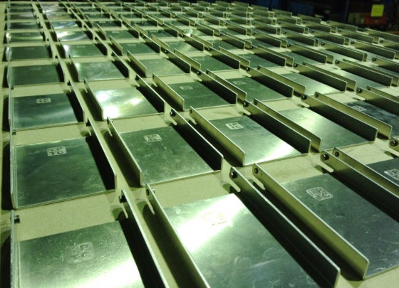 2012/07/31 21:15カバー部品の量産加工進行中です。アルミニウム製のコの字に曲げたカバーにステンレスのピンがカシメてあります。この後に塗装工程に入ります。 もっと見る