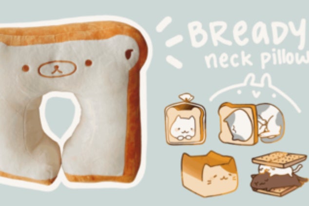 "toast cats"(猫がトーストに首を突っ込んでいる様子)からイメージが湧きました。確かにこの柄のネックピローを使用するのには少し恥ずかしい気がするかもしれませんが、また旅行ができるという喜びを考えたら別にそんなこと気にしなくてもいいですよね?自分がこのデザインに似合っていたらそれで十分です!