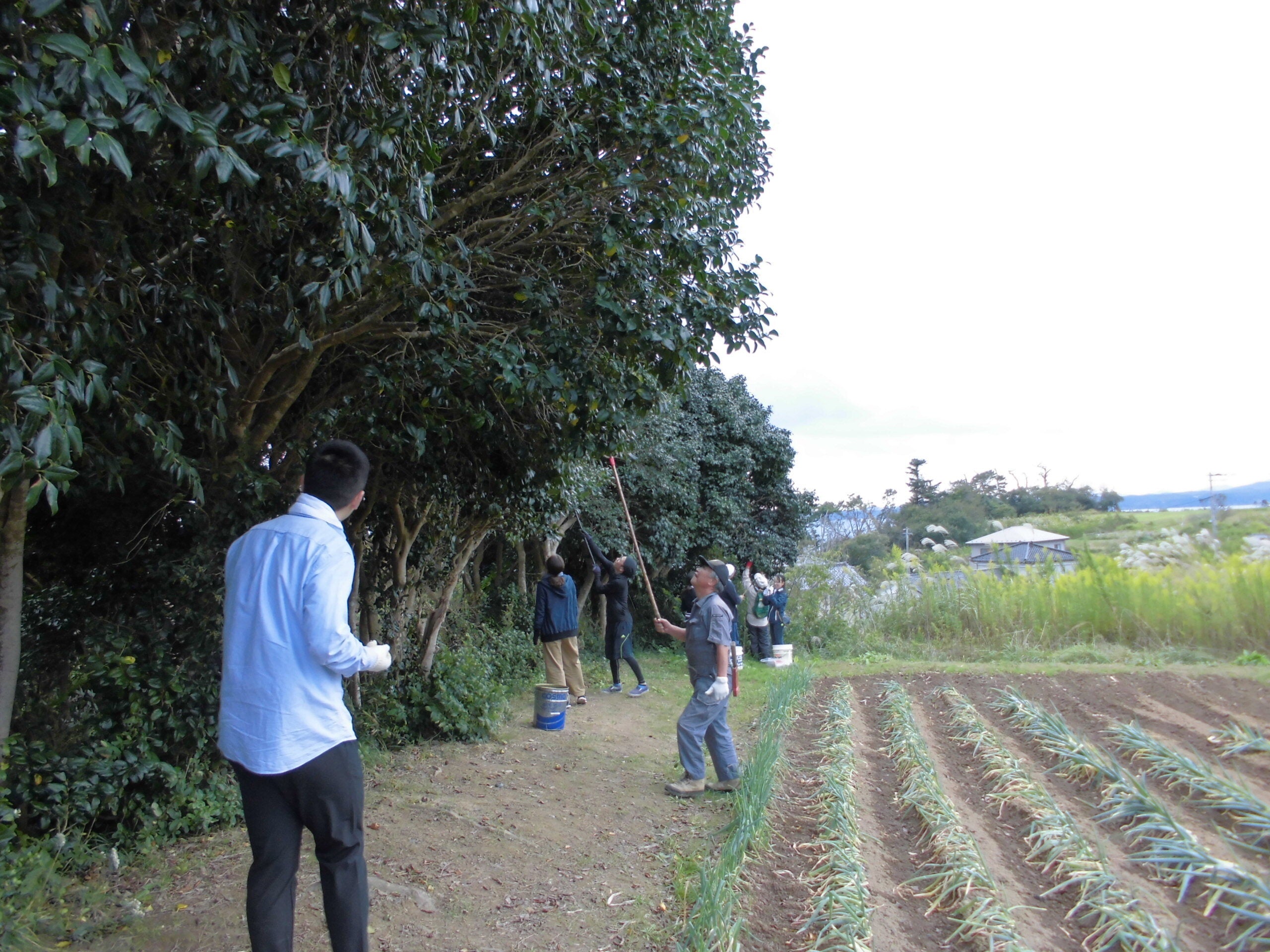 2020/08/14 10:43毎年、9月の中旬ぐらいになると前浜では椿の実の採取時期になります。実を少し乾燥させると割れ目ができ、中から種を取りやすくなります。ひとつの実に4~6個ぐらいの種が入っています。地面に落ちた実を採取すると、すでに虫に食われているものがあるので、高枝切ばさみなどを利用して、木から直接実を採取します。 もっと見る