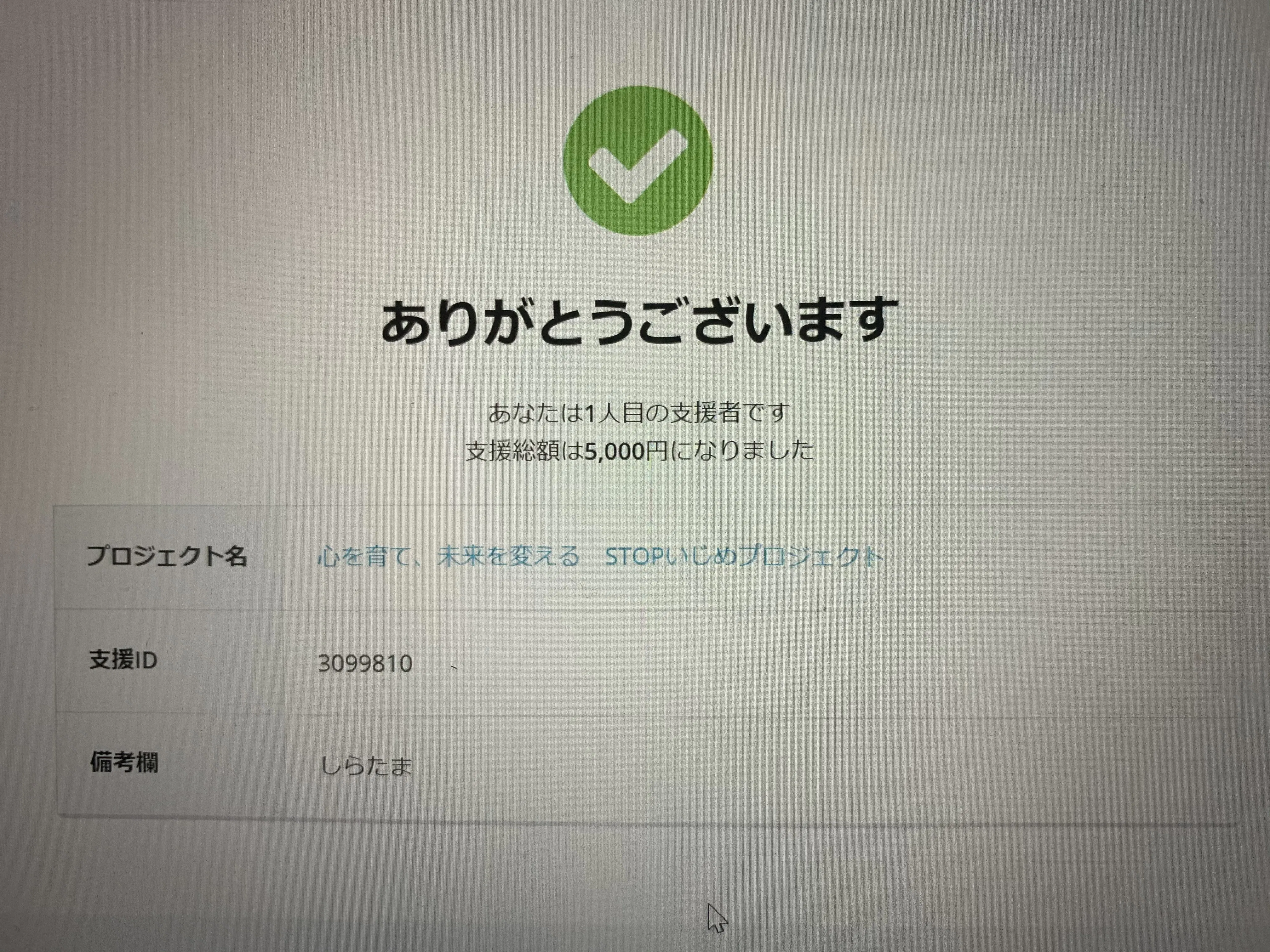 そうして見事!栄えある一人目の支援者になれました~(^^♪