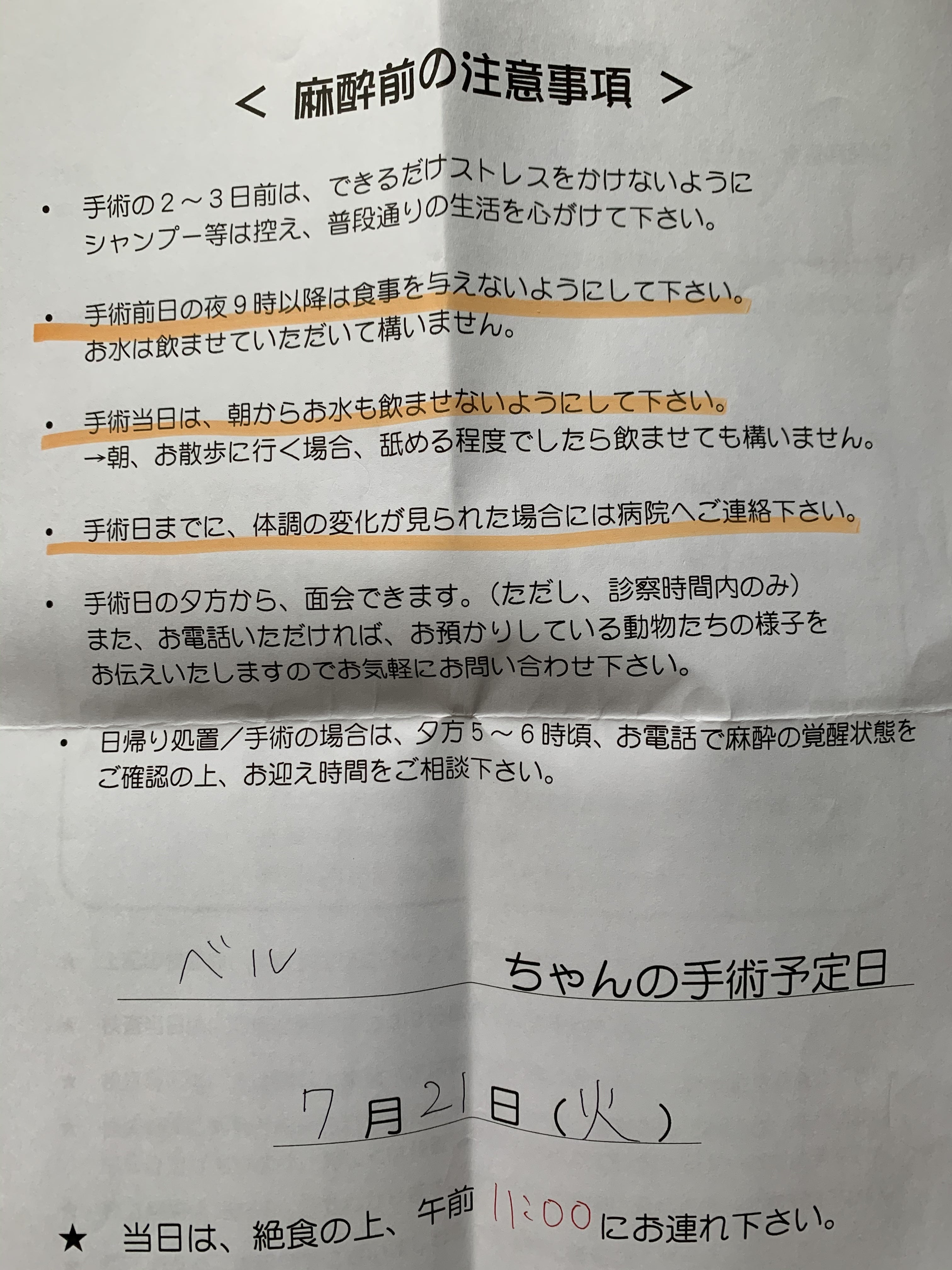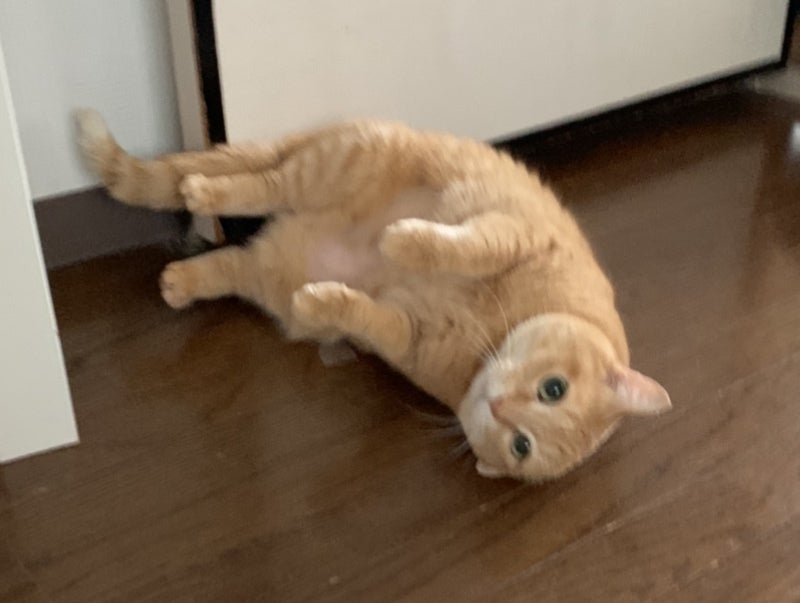 本日ベルが手術になり、前日の夜ごはんを最後に朝ごはんは抜いて連れて来てくださいと言われお昼頃に頑張ってねとエールを送りバイバイしてきました。写真は朝ごはんをもらえると思いコロンコロン甘えてるところです。