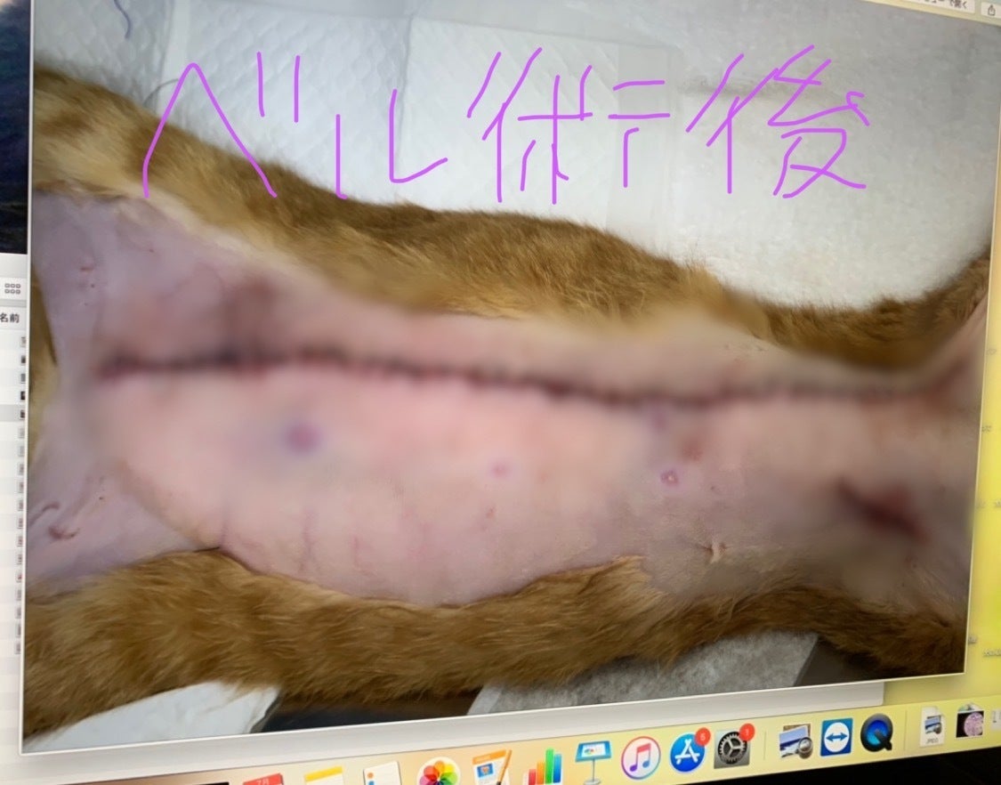 2枚目は術後の画像です。傷が大きくて痛々しいですが一生懸命ベルが頑張ってくれたんだなと思いました。これ以上ベルの負担が増えないように病理検査の結果が良いことを祈るばかりです。