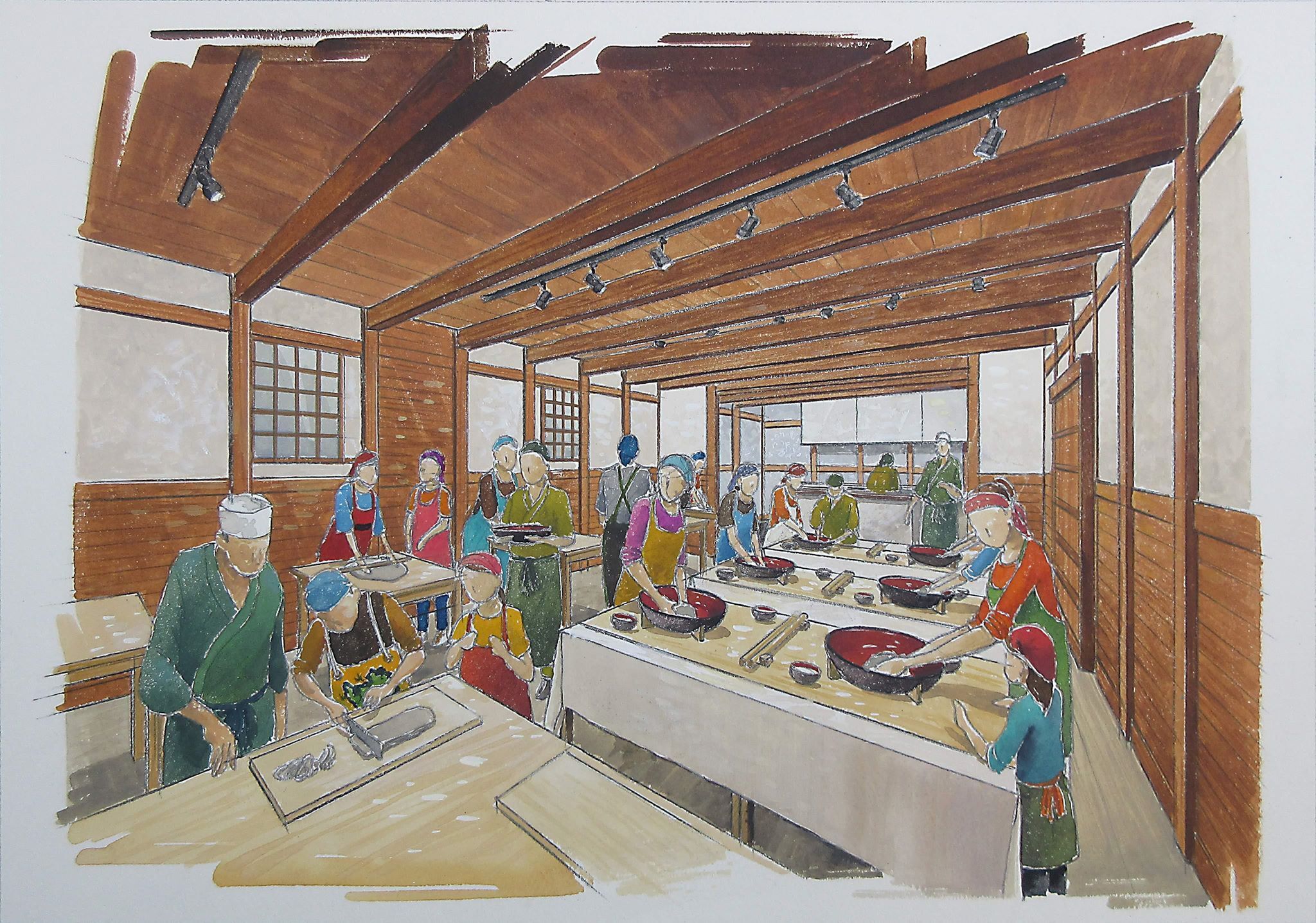 1階はシェアキッチンを設置し、『食』にまつわる教室やイベント、展示会場にしたいと考えています。