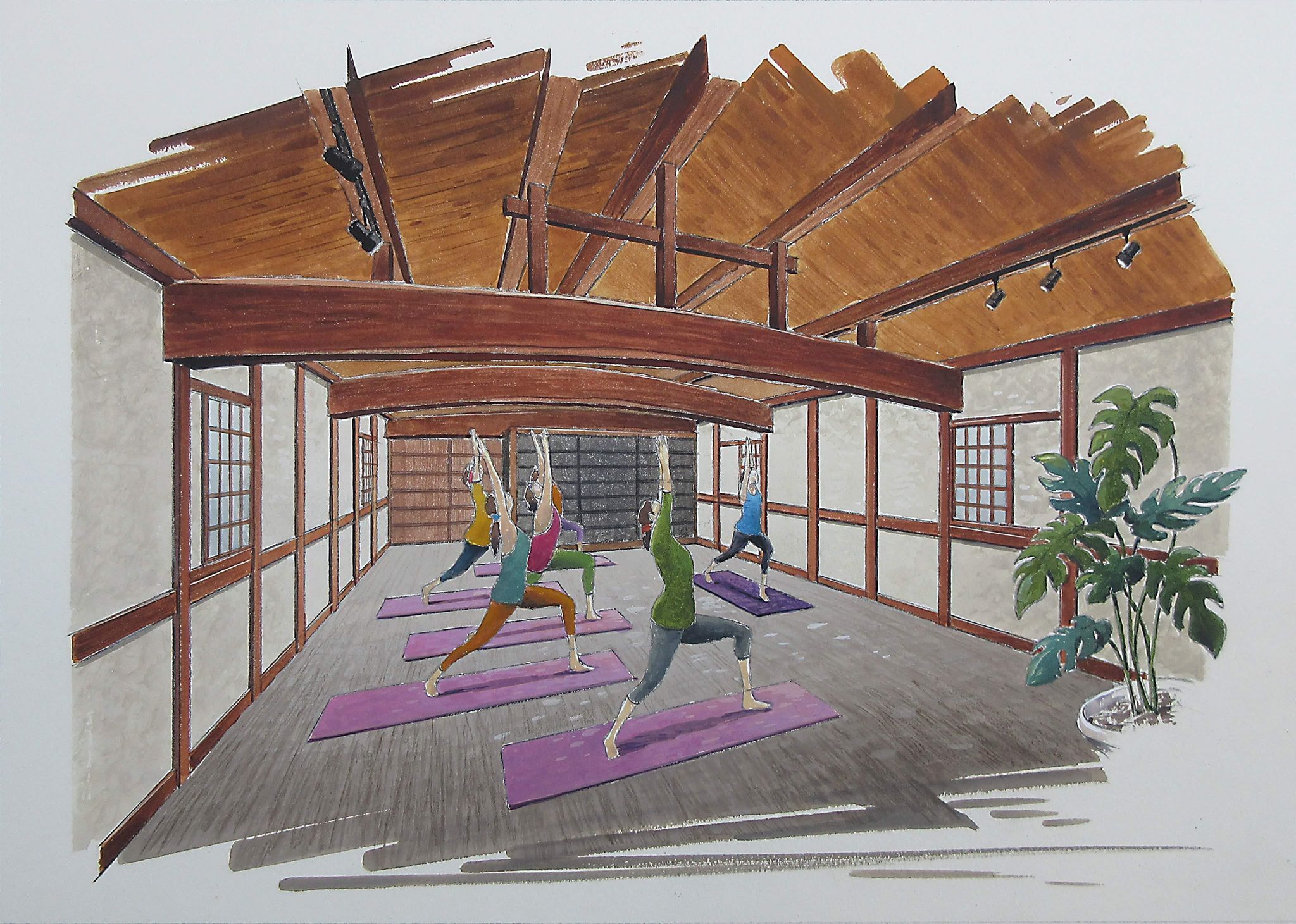 2階はヨガ教室や講演会、映画上映会をするスペースへ再生し、皆さんをご招待します。