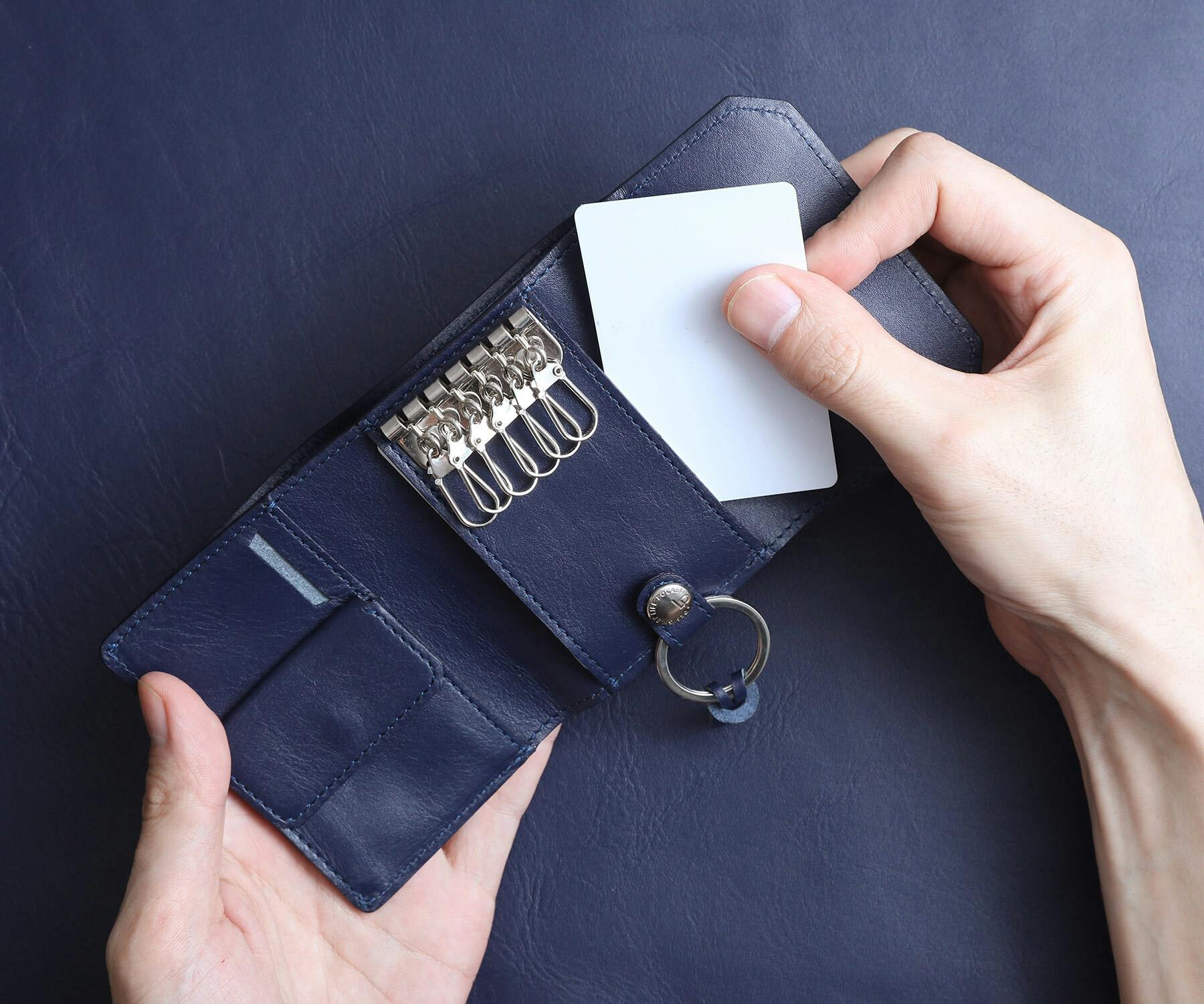 「Key Wallet Mini」は、お財布とキーケースの機能を一つにした小さなお財布です。そして、2つ持たなくても安心できるだけの収納エリアを設計しました。鍵やお金をコンパクトに収納する事ができます。