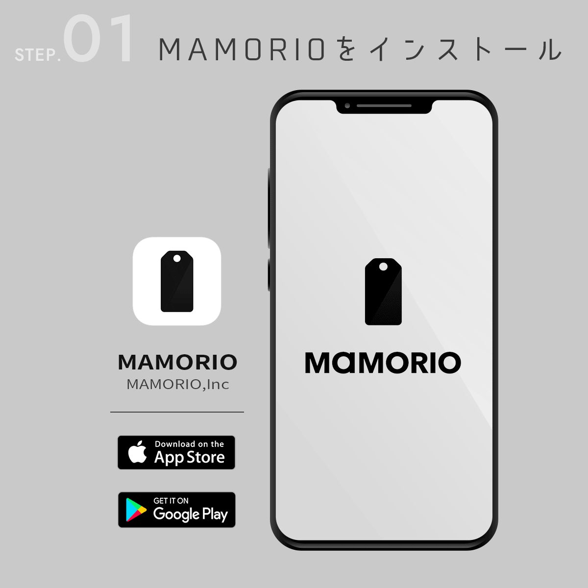 お使いのスマホのアプリストアからMAMORIOアプリをインストールします。MAMORIOアプリは無料でご利用いただけます。