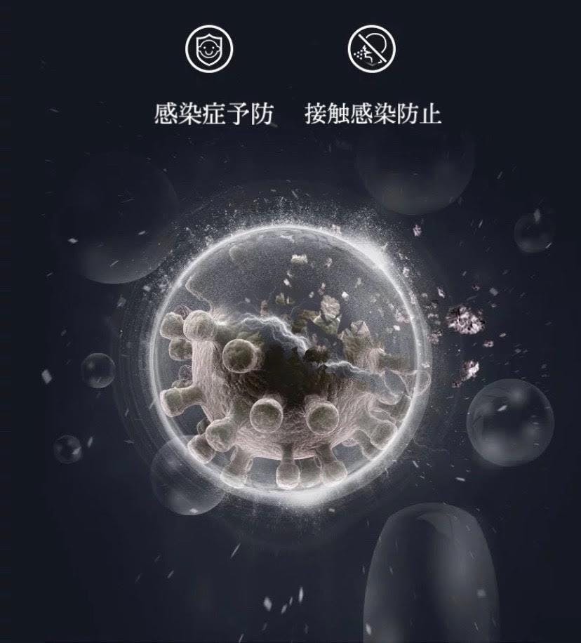 従来のディスペンサーとは違い容器に触れる必要がなく、手をかざすだけでアルコール消毒ができます。これを使えば大きなリスクとして最近問題視されている第二次感染を防ぐことができます。