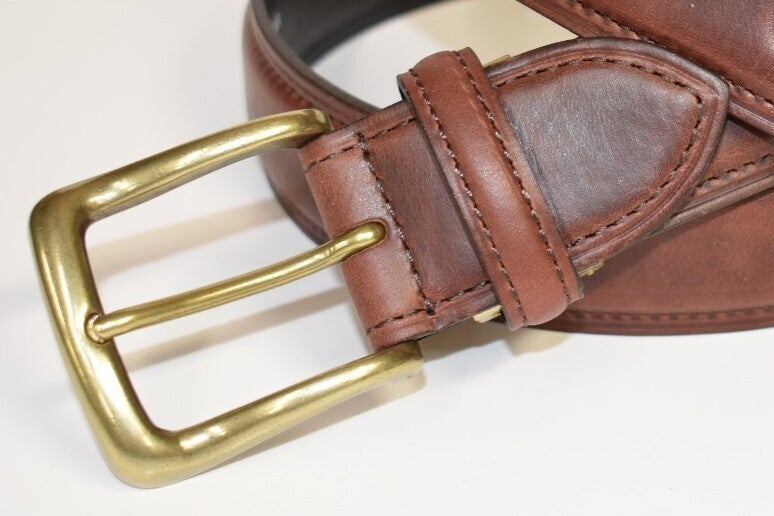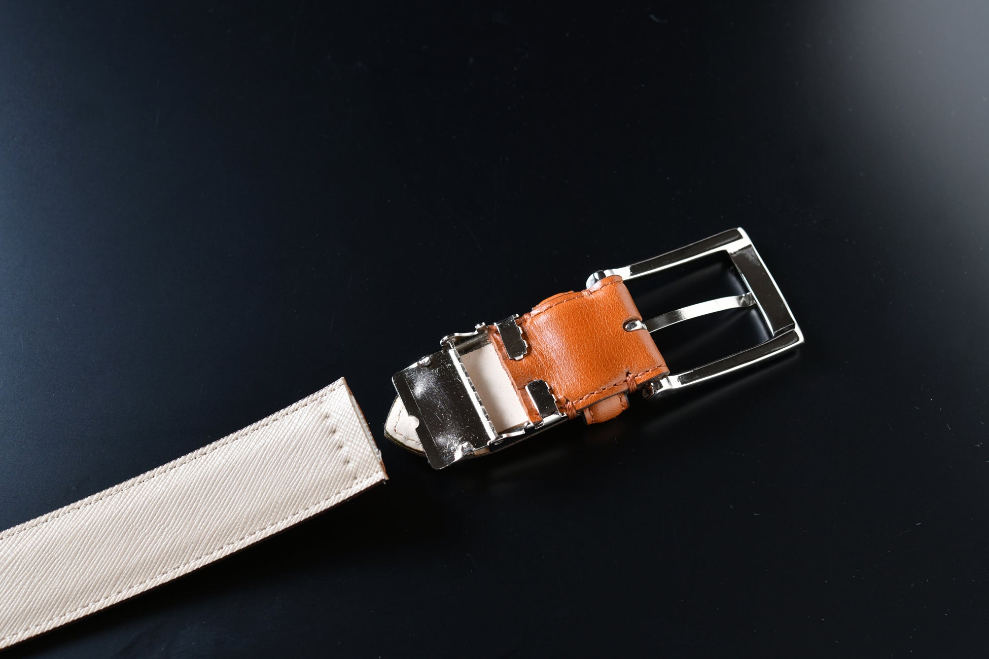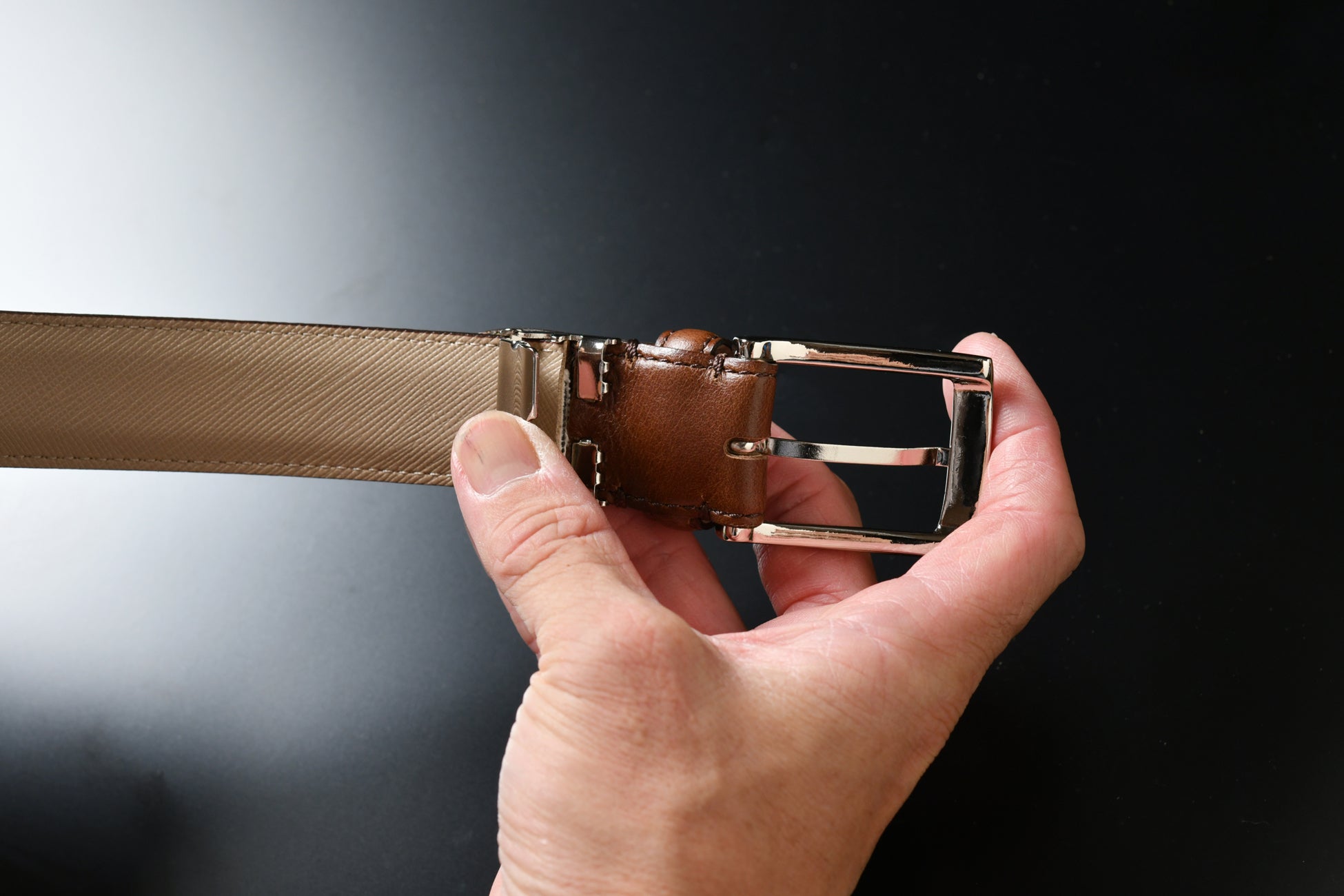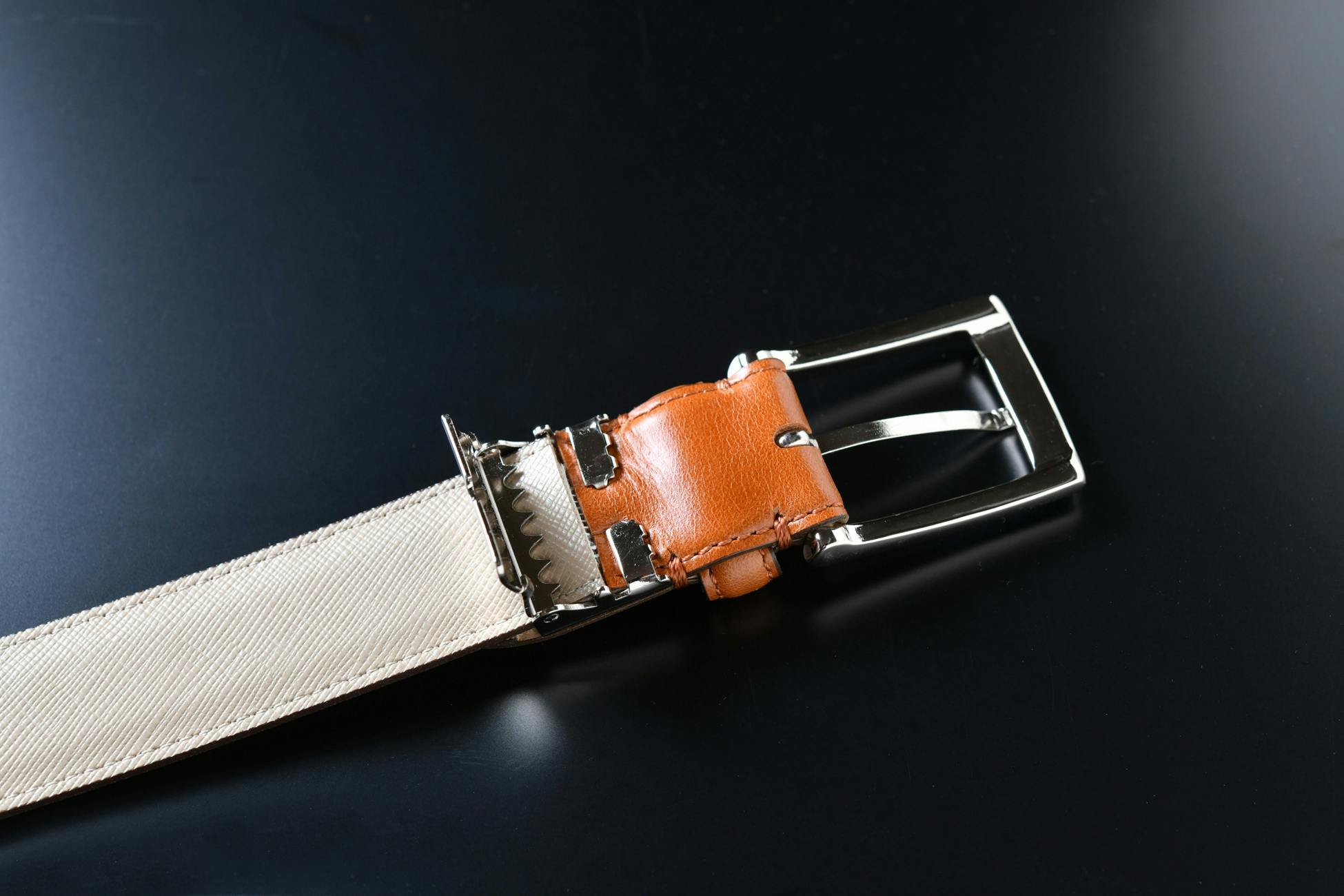 紳士ベルトはシンプルさが重要と考えています。シンプルゆえに革の良さが引き立ち、革の選定を誤るとベルトの雰囲気すべてを台無しにしてしまいます。仕立てにも大変気を使います。革の厚みから盛り上がりの雰囲気、ステッチに至るまで。すべてがバランスされたベルトが、理屈抜きに雰囲気のある魅力的なベルトになるのです。