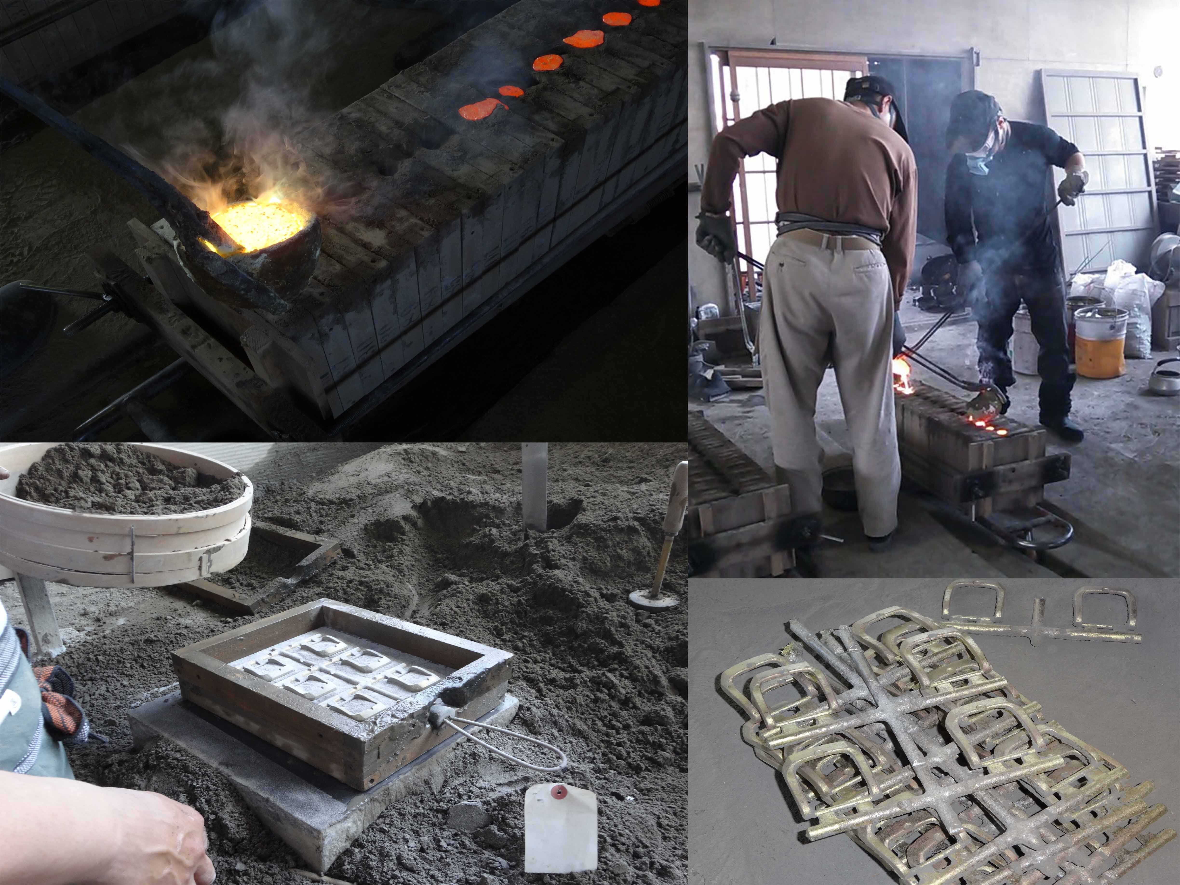 砂型成型では表面にザラツキが生じるため磨き加工によって表面を滑らかにします。この磨き加工は職人のなせる業、バックルの表情を決定づける大変重要な工程です。熟練の職人が丹念に一つ一つ磨きをかけていきます。