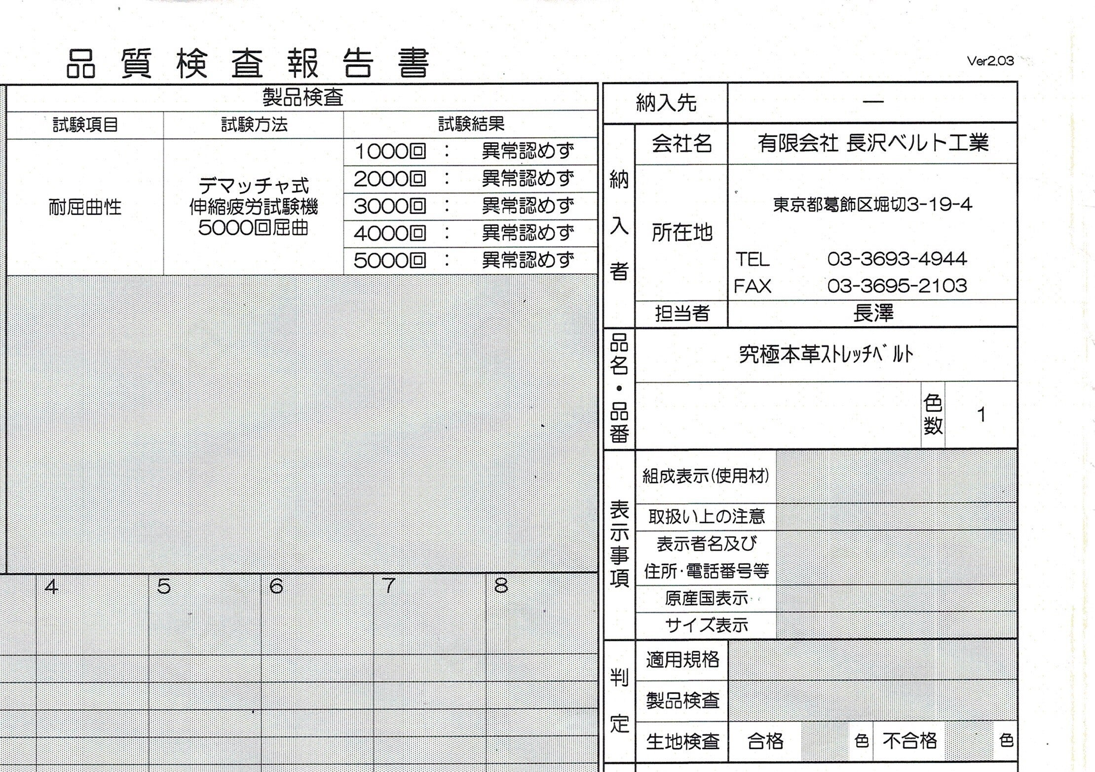 ベルト帯を5000回屈曲させた結果、表裏とも亀裂は見られず、試験前とほぼ変化はありませんでした。