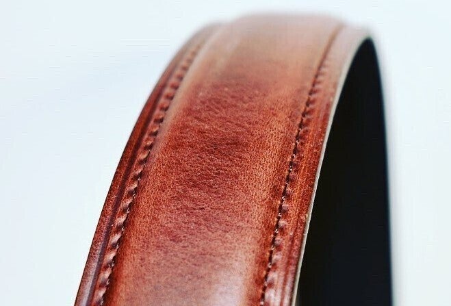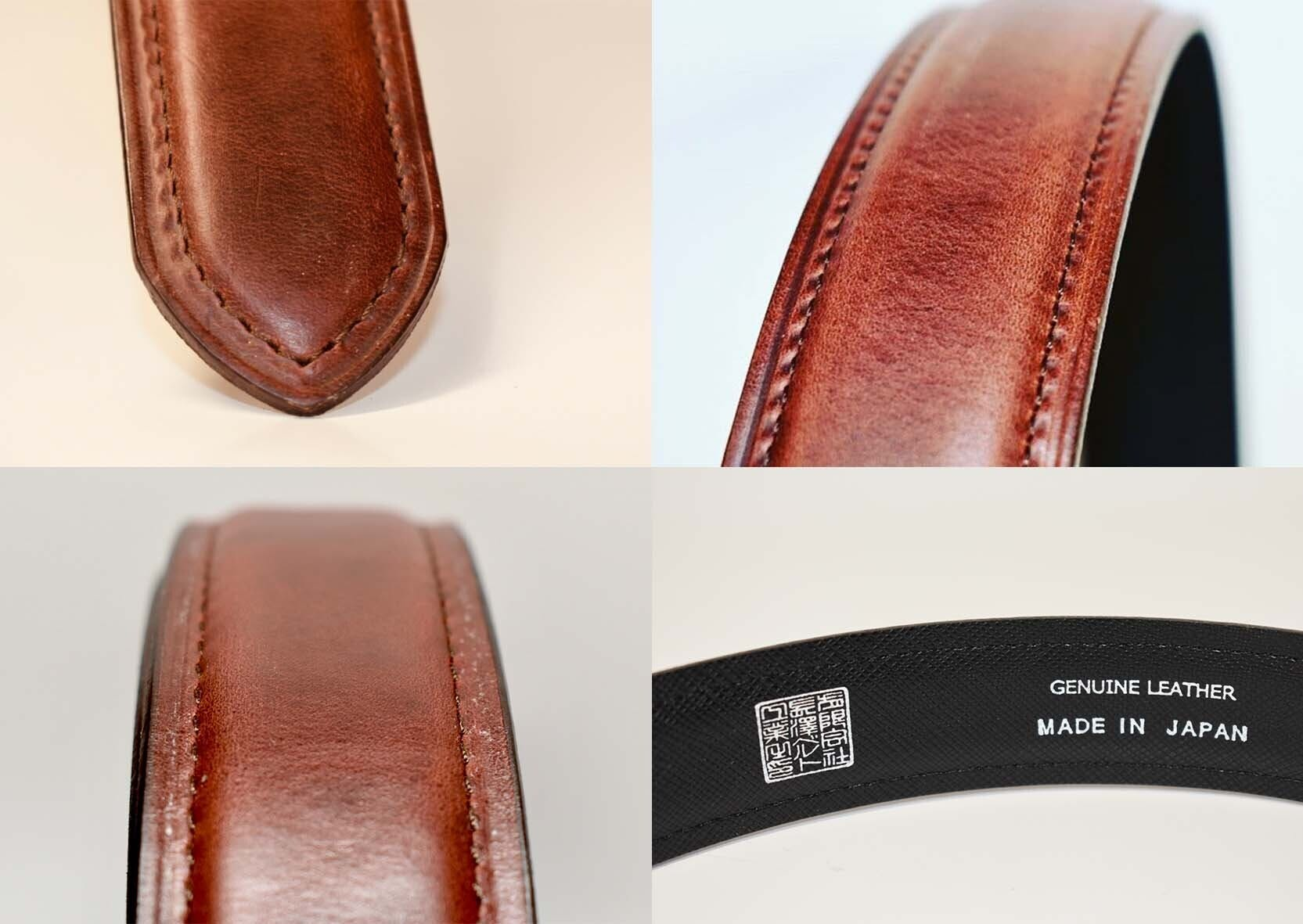 表革はベルトのイメージや雰囲気を左右する最も重要な選定です。数ある素材の中から選んだ革は、アメリカの老舗タンナーである「ホーウィン」社が製造する高級革 「クロムエクセル」 革を採用しました。