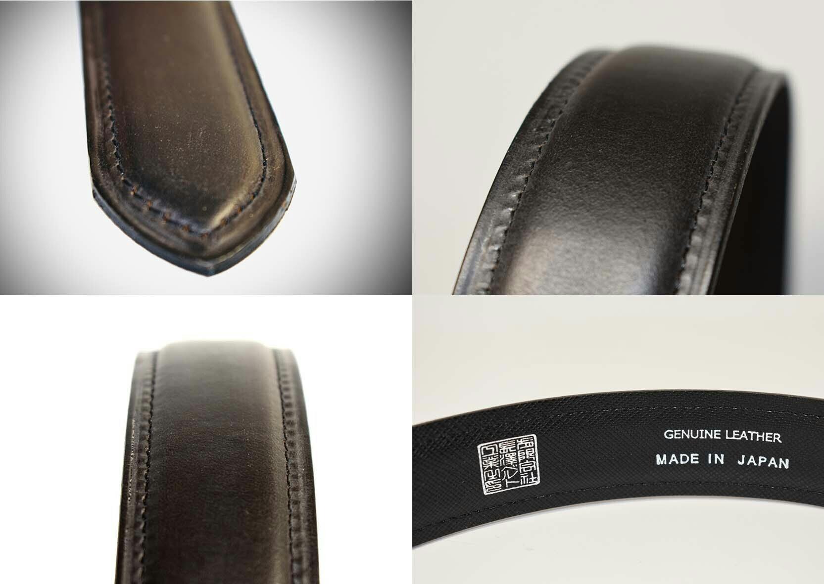 バックル以外の金具を革で隠して見えなくすることからこの名がついています。見た目も上品で高級ベルトでは数多く採用されている仕様です。