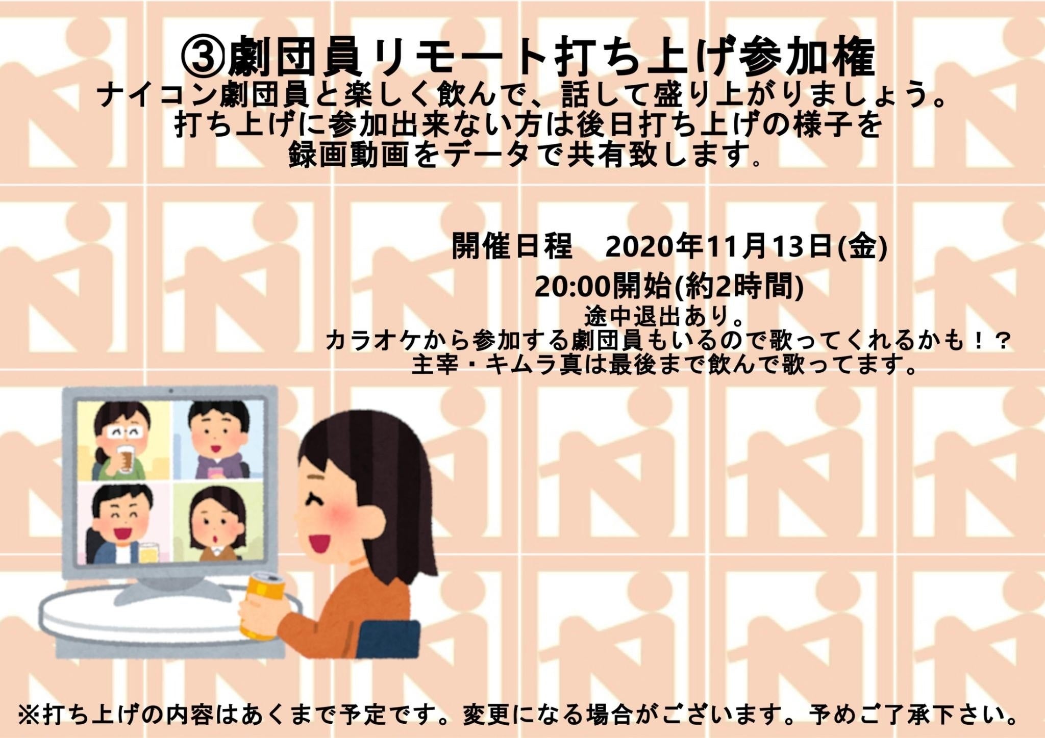 前日に劇団よりズーム招待をメールにて送らせて頂きます。