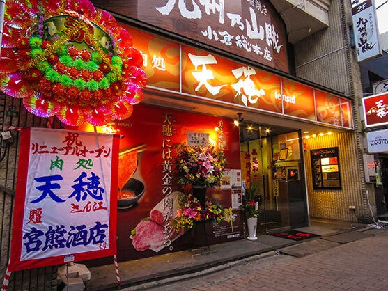 また小倉では「本当に美味しい牛肉を食べて貰いたい」をコンセプトに、地元の小倉牛、宮崎牛、佐賀牛を中心に肉処天穂(卸直営焼肉店)を運営しております。