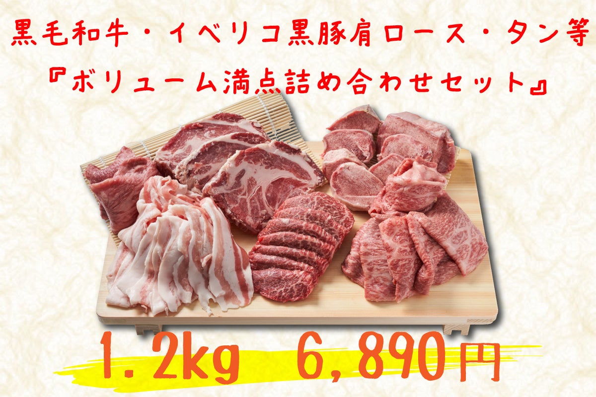 佐賀牛500g+イベリコ黒豚700gの1.2㎏で6890円となっています。