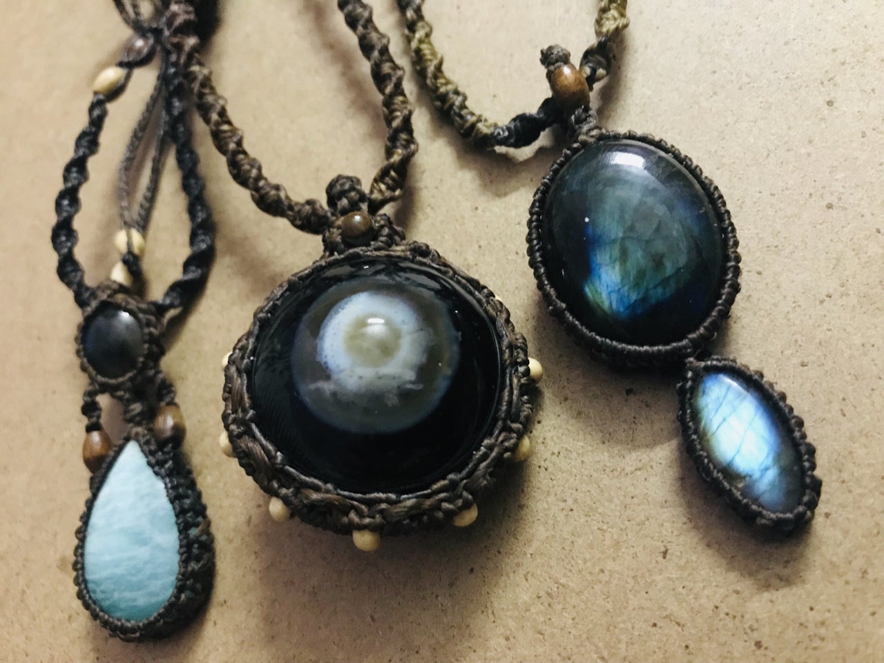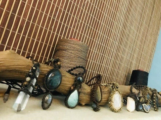 世界各国のストーン(天然石)でマクラメアート(ストーンを紐で編んだりするアクセサリー)を作り