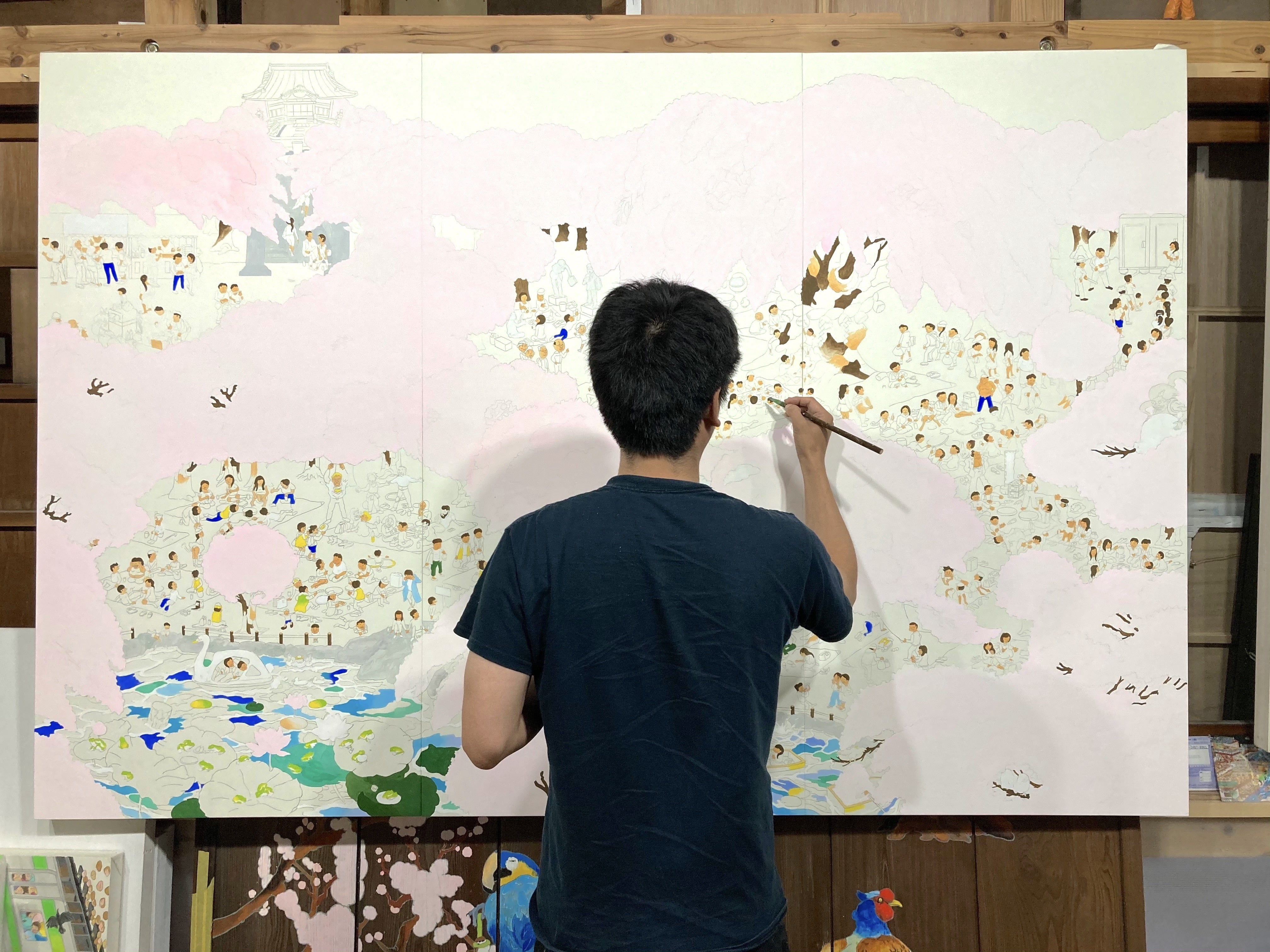 2021/07/06 09:38ご無沙汰しております。本日7月6日より『墨田を描く現代風俗画』の作品展示をスカイツリーのソラマチにてさせて頂きます。大きい作品ですのでなかなか展示場所を見つけるのは大変ですが、『墨田区観光協会』様のご協力をいただき展示することが出来ました、ありがとうございました!空間も広くゆっくり見ていただけると思いますので、お近くに来た際にはぜひお立ち寄りください!会期ははっきりとはまだ未定ですが、7月末日までは展示しております。場所;東京スカイツリータウン ソラマチ5F すみだまち処の隣のスペースにて展示しており ます。宜しくお願い致します! もっと見る