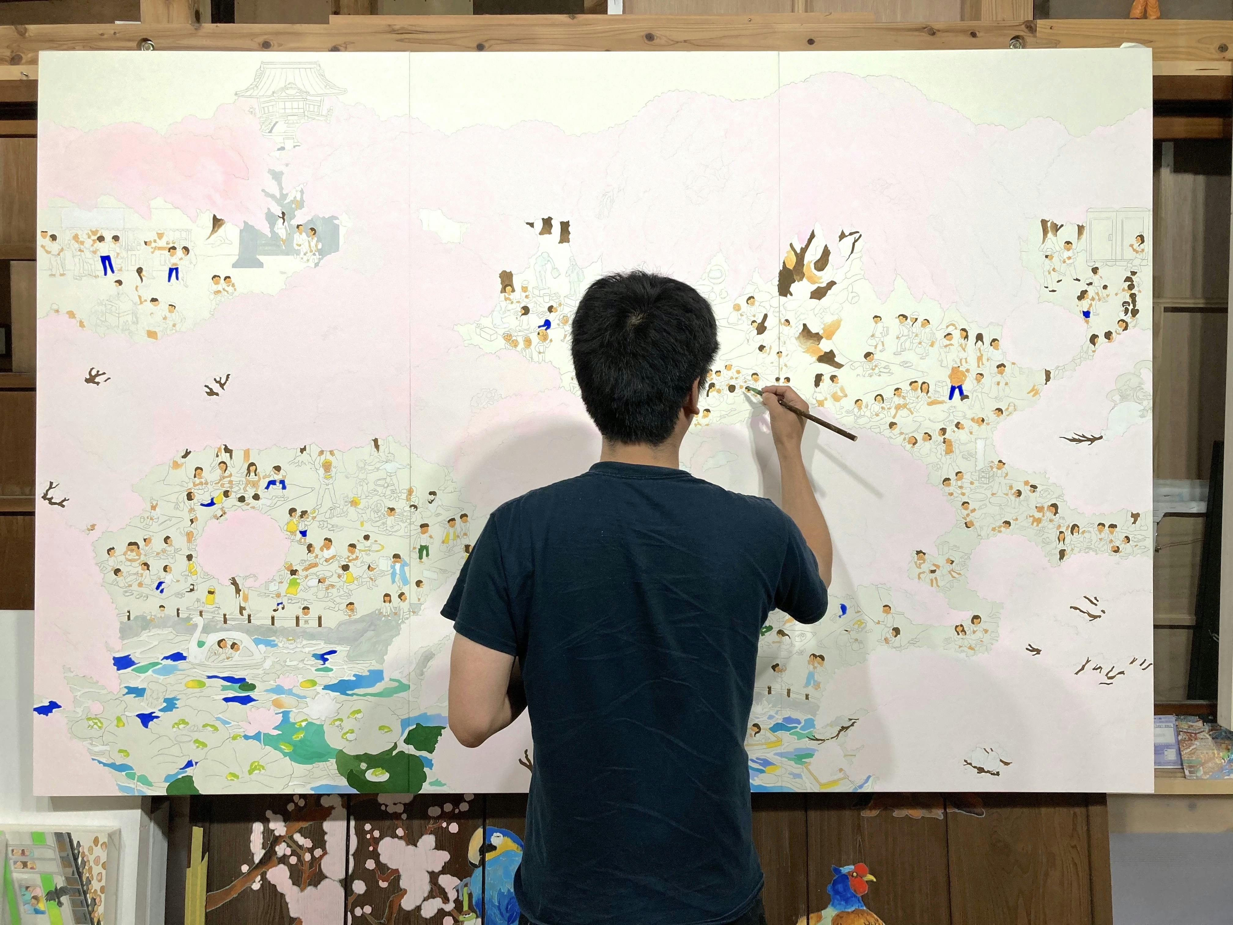 初めまして、様々な地域を取材しその場所の群像模様を題材に絵画を描き続けている画家の海野 良太と申します。これまでに、東京の椿山荘や日本橋、札幌、そして海外ではアメリカやブラジル、香港などを描いてきました。