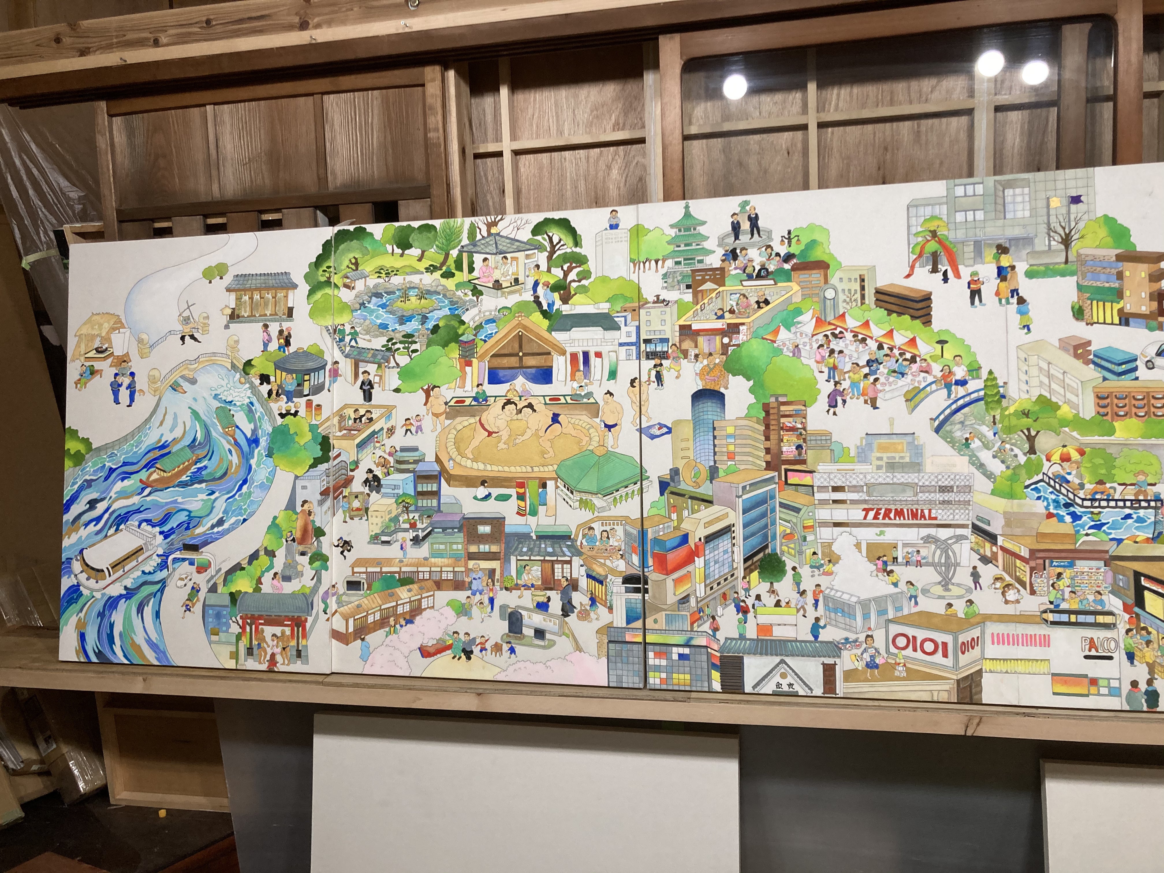 錦糸町、両国あたりを描いています!隅田川も画面に入りようやく作品の端まで到達しました!