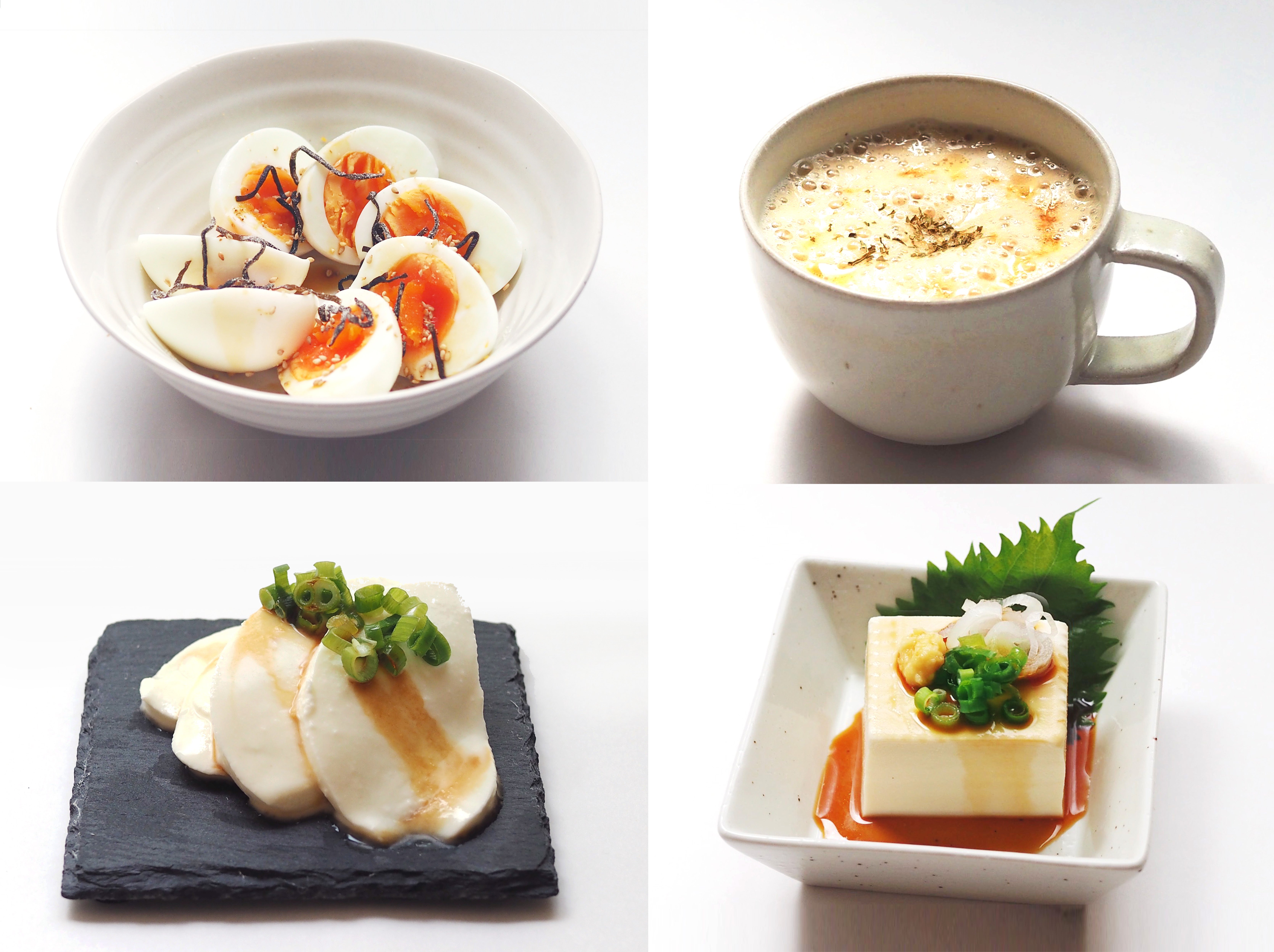 そうめんに合うことはもちろん、豆腐やチーズ、白米、ネギ、大根、カブ、マッシュルーム、れんこん、とろろ、カマンベールチーズ、お餅、イカ、たまご・・・「おいしい椎茸だし」は、これらの白い食材と組み合わせると何でも美味しくなります!
