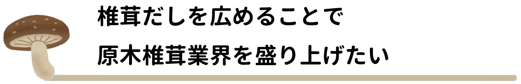 可能性がたくさん詰まった原木椎茸業界を盛り上げるため、みなさんが椎茸がもっと好きになる椎茸だしを作り、原木椎茸業界、さらには林業へ還元していきたいと考えています。