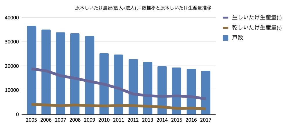 僕たちの椎茸だしには、原木栽培という2年半かけて森で栽培した椎茸を使っているのですが、原木椎茸農家は過去10年間で半数まで減少しており、あと数年間のうちに原木椎茸はなくなってしまうとまで言われています。