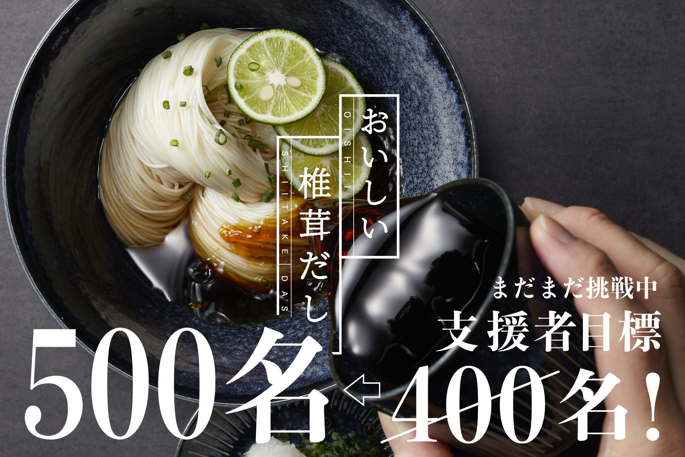 こんにちは、竹村です!支援者目標人数の400人も達成できました、、!!ありがとうございます!!!こんなマイナーなプロジェクトをたくさんの方に応援いただけて驚きです、、!!本当にありがとうございます!!!実は一時期、完全に支援なく、無風状態...なときもあり、うーん、さすがにこれ以上は厳しいのかもなあ...なんて思っていたタイミングもあったのですが、じわりじわりと支援いただける方が増え、残すところ7日ラストスパートをかけようと思っていた本日、目標を達成することができました!!本当にありがとうございます!!次回は支援者目標500人を目標に掲げて、頑張っていきます!みなさんが作っていただいたこの優しさの輪を、もっと食を通じてお返しできるよう、美味しい製品を作ってお届けできたらと思っています!どうぞ宜しくお願い致します〜!追伸:さり気なく新しいリターンを追加しました!①おいしい椎茸だし 100ml × 3本 おすそ分けセット②よりどりみどりうま味まつり おいしい椎茸だし500ml + 飲めるだし oh dashi 椎茸&トマト 10包ずつお時間あるときに眺めていってください〜!