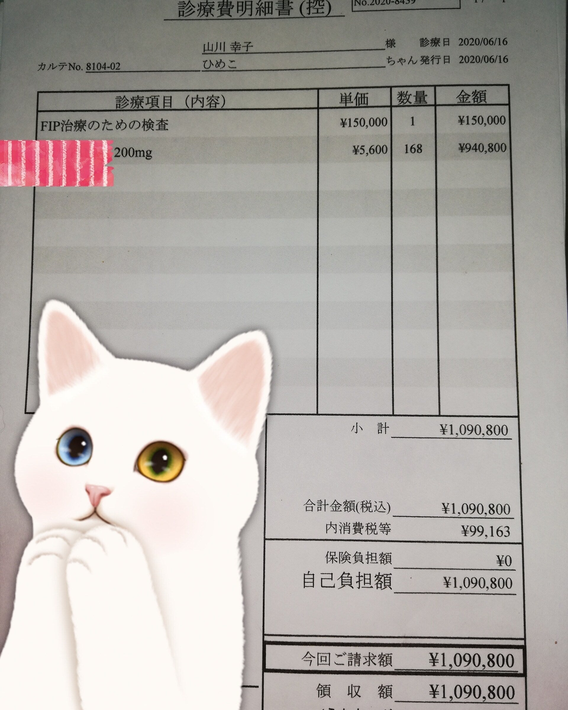 しらこがFIPになり、助けられるお薬があるのに、お薬を買うお金がなく最初は見殺しにするしかできないと、毎日悩みました。お薬があれば助かるかもしれないのに。お薬が買えない事で助けられない。