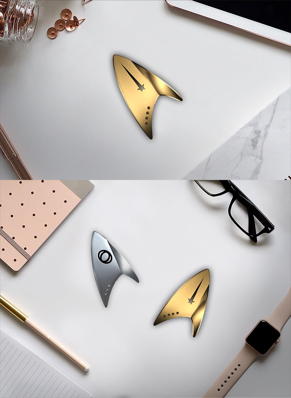 本作登場のバッジを同スケールで忠実に再現
