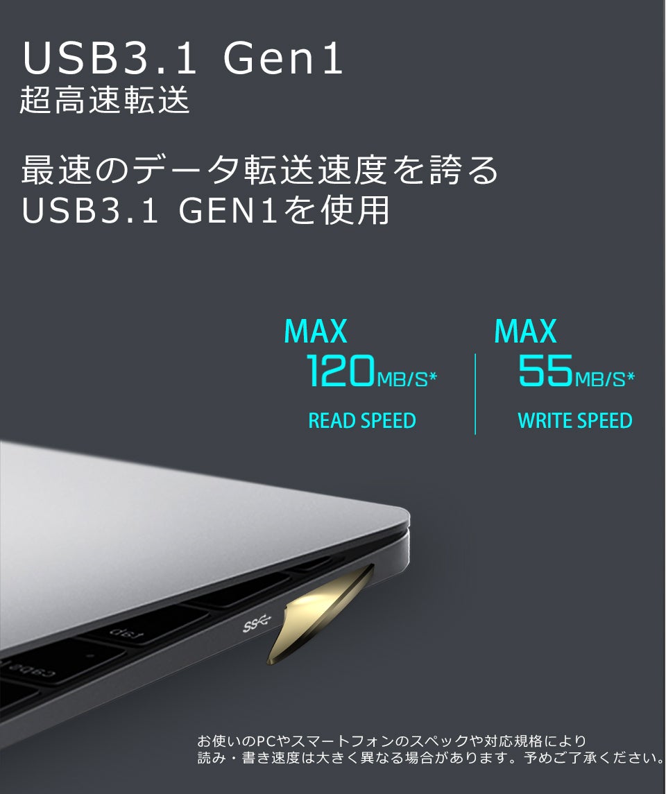 USB3.1 Gen1対応。最大転送速度120MB/S