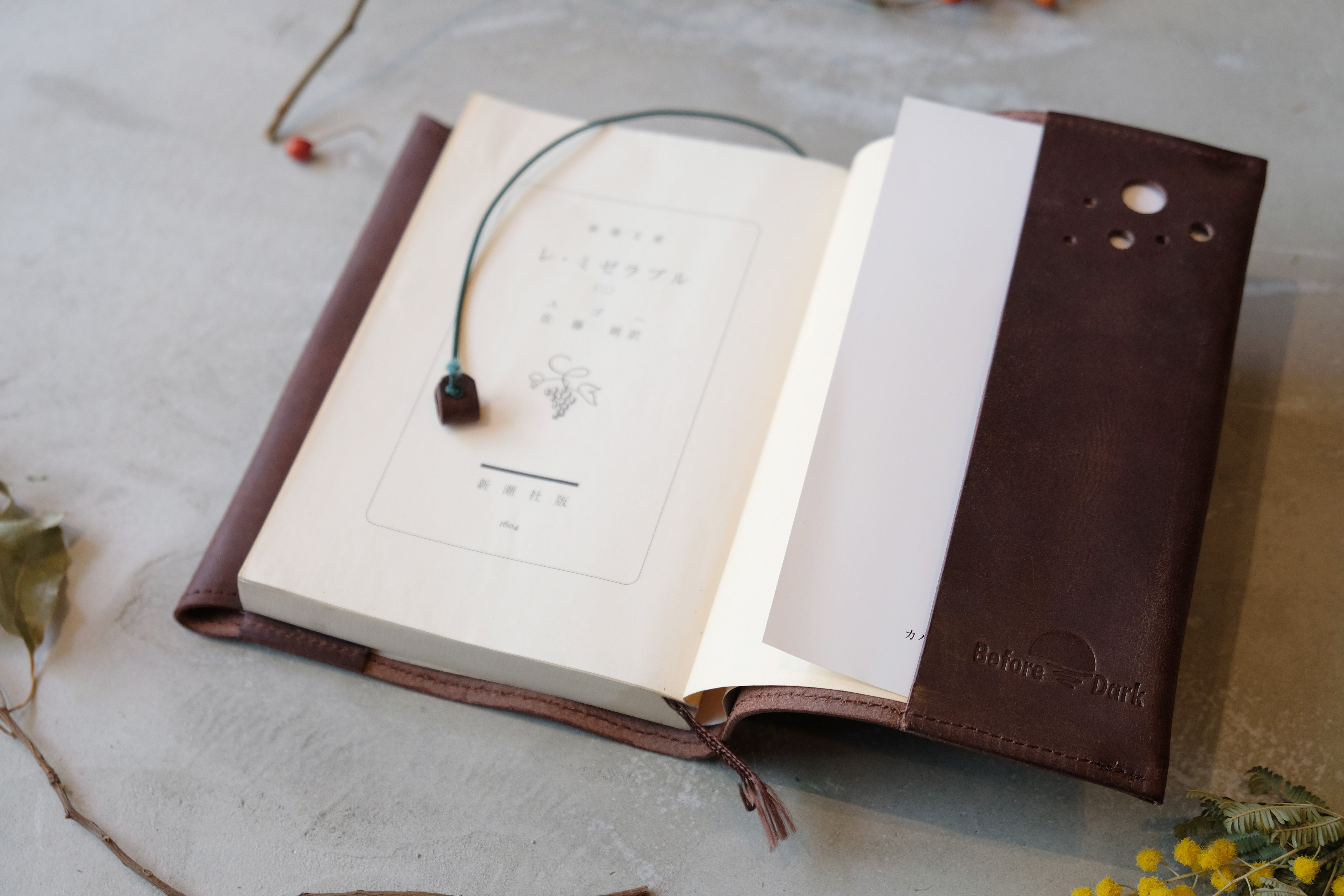 清荒神参道商店街のお店「Before Dark」様よりブックカバーをご紹介します。ハンドメイドの革工房として宝塚市を中心に展開されておられます。店内もとてもオシャレな雰囲気。工房っぽく革モノのいいニオイがします。秋頃のお忙しくなる中、今回ブックカバーでクラウドファンディングに参加頂いています。色はおまかせになりますが、どれもハンドメイドの温かみがある一品です。(限定10点になりますので、まだの方、ご検討お急ぎください)他にも、キーケースやお財布など、小物からいろんなアイテムまで製作されています。どれも「おっ!?」と思わせる、ちょいオシャレアピールにいかがですか?その他の商品など、詳しくはサイトリンクからギャラリーでご覧ください。http://before-dark.com/
