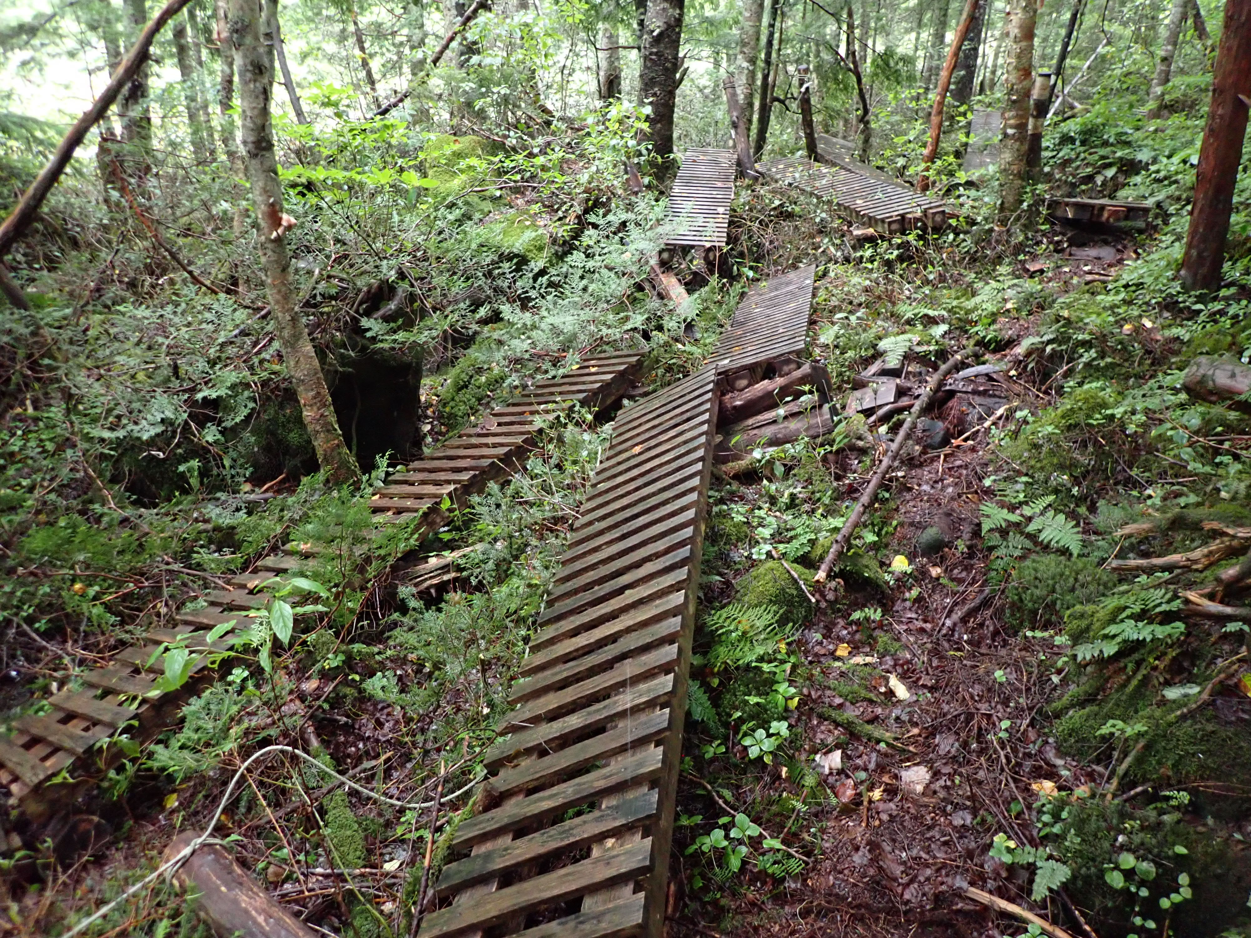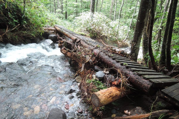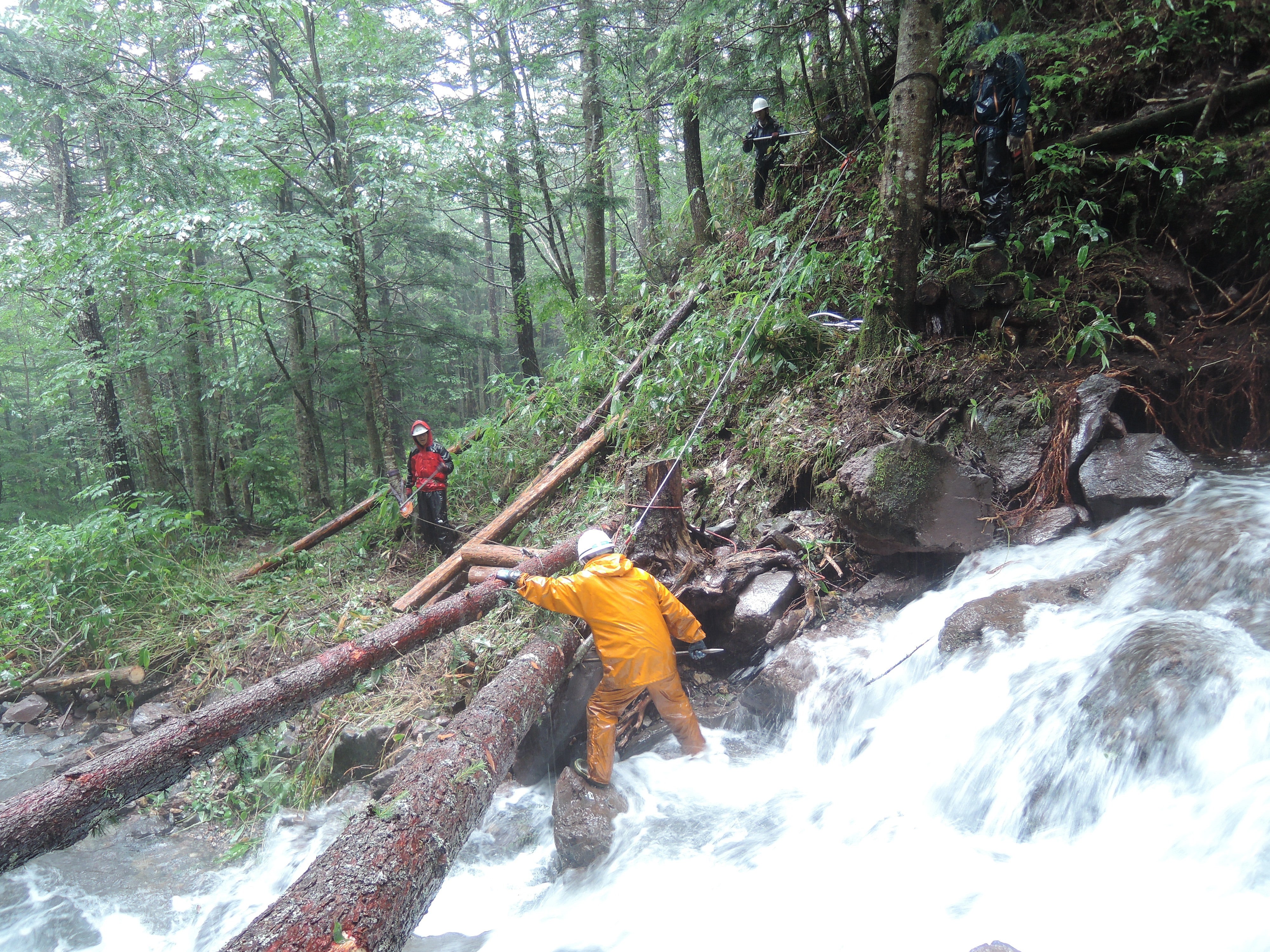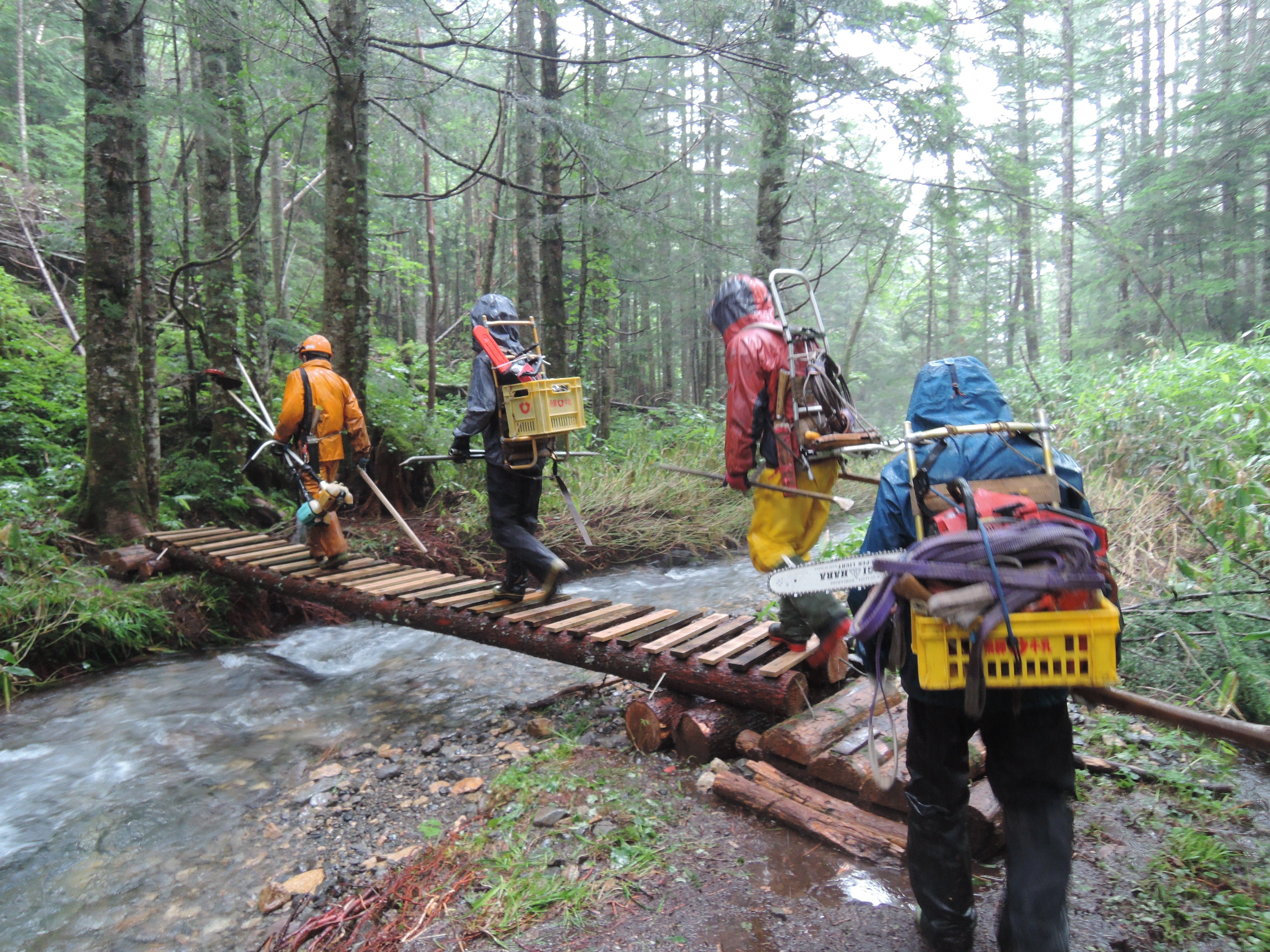 この度の7月の集中豪雨は、五色ヶ原の森や周辺地域にも経験したことのない甚大な被害をもたらしました。水路は変わり、点在していた橋は抜け落ち、登山道が全て流失してしまった場所も多々あります。
