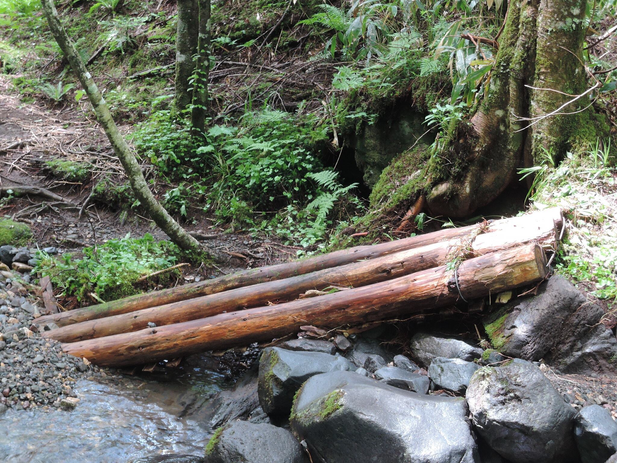 お客様に安心してガイドツアーに参加いただく為には、自然の景観をできるだけ損なわず、森の中で調達できるもので登山道をしっかりと整備する必要があります。