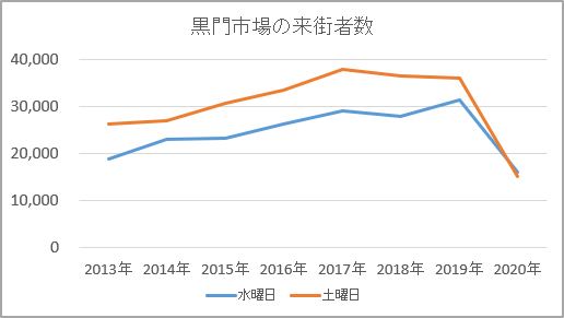 黒門市場の来街者調査結果(経年変化)