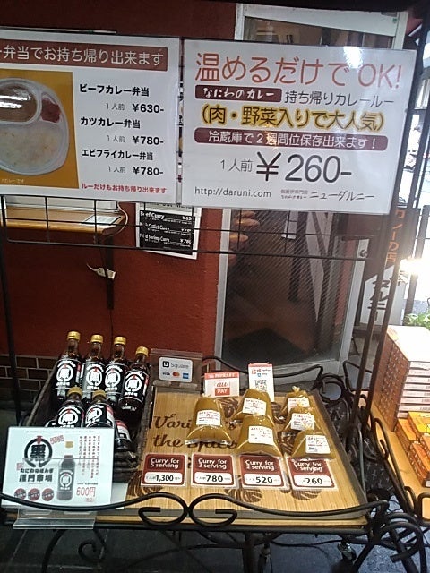 カレー・ルーの店頭販売 レトルトカレーとは別に、店頭で袋入り のビーフカレーのルーを販売しています。1人前260円で1人前、2人前、3人前、5人前があります。近隣の方を中心に良く利用されており、各店舗の従業員の賄(まかない)などにも利用されているようです。年末の黒門市場の繁忙期には、どの店も近隣の方も手軽に食事になるからか沢山売れます。最後の1週間は1日に千人前ほど売れています。
