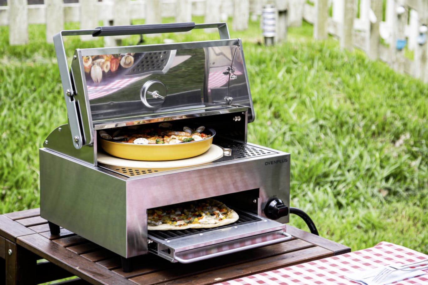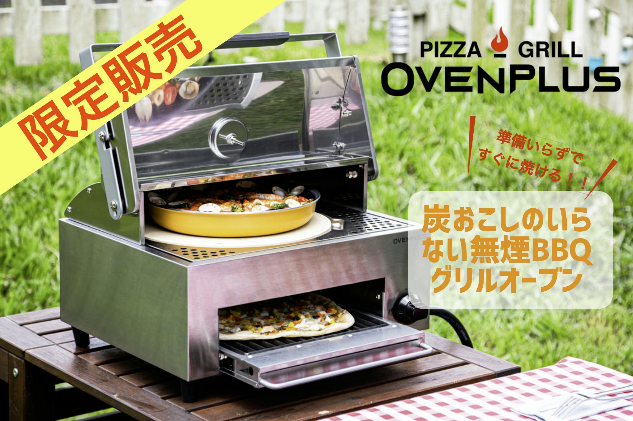 OVEN PLUSは、10分で260℃に熱され、最大450℃まで加熱される火力の優れたオーブンです。準備から調理まで5分。ピザを焼けば2分〜4分。お肉は8人分が15分でジューシーにできあがります。誰でも失敗せずに簡単に作れるので、家族やグループとのコミュニケーションに最適なアウトドア専用の調理器です。