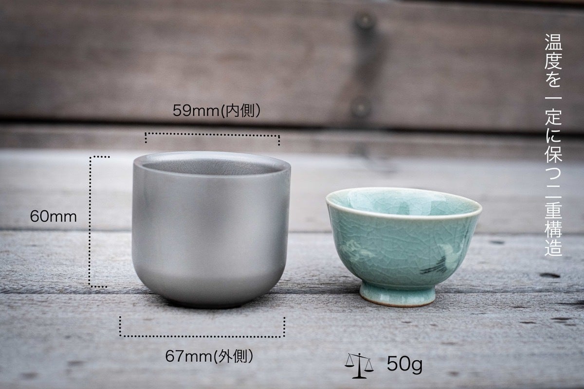 二重構造で、冷たさ、暖かさを保ちます。無味無臭なので、繊細な風味を味わうお茶や日本酒にもお使いいただけます。
