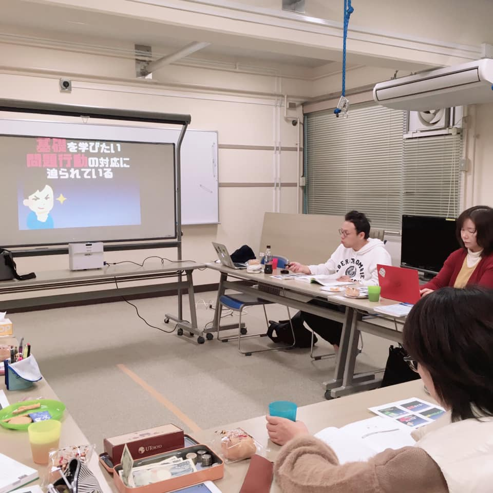奈良教育大学で実施されていたティーチャー・トレーニング・プログラムのアドバンス編。子どもの行動の流れに注目してその行動の目的を明らかにし、問題行動を防いで適応行動を増加させるための環境操作について学ぶ会です。臨床心理士も一緒に参加します。