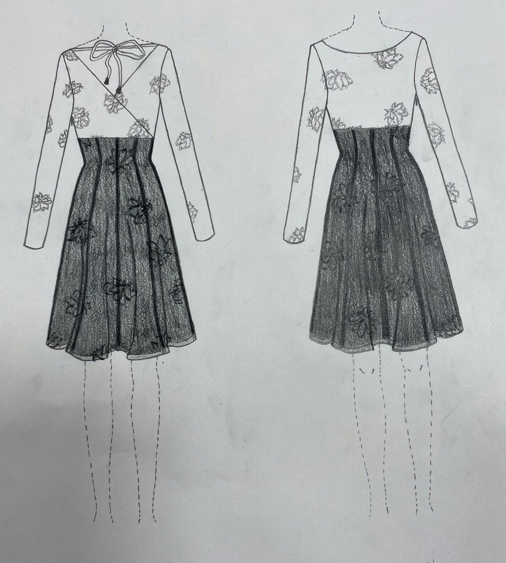 更に、今回は透ける生地を土台のワンピースに対してふんわりとボリュームを持たせたる工夫として、ウエスト部分にほんの少しギャザーを入れたパターンにしています。