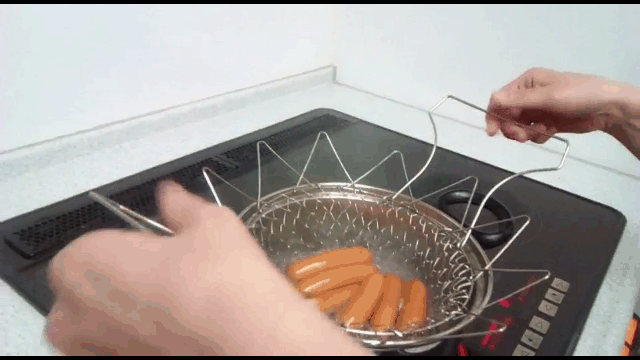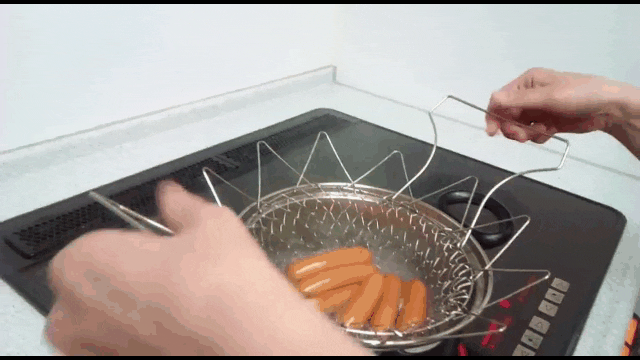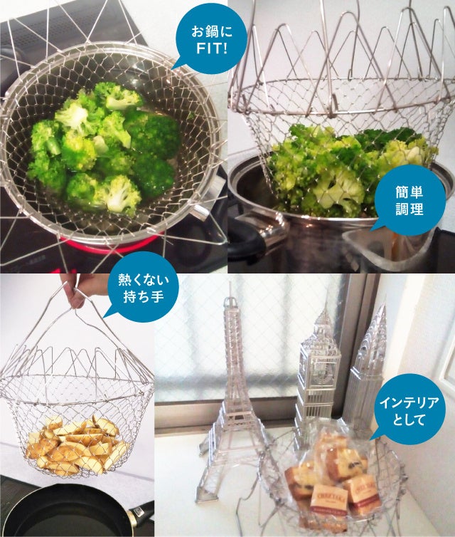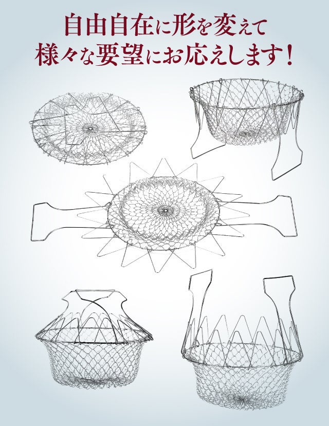 この多機能クッキングバスケットは自由に形を変えて、数多くのキッチンのタスクを素早くこなすことができる働き者です!